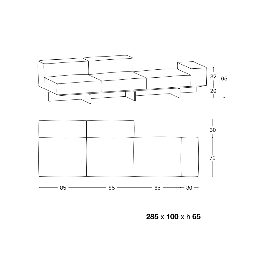 Rozměry:- Délka 285 cm x hloubka 100 cm x výška 65 cm