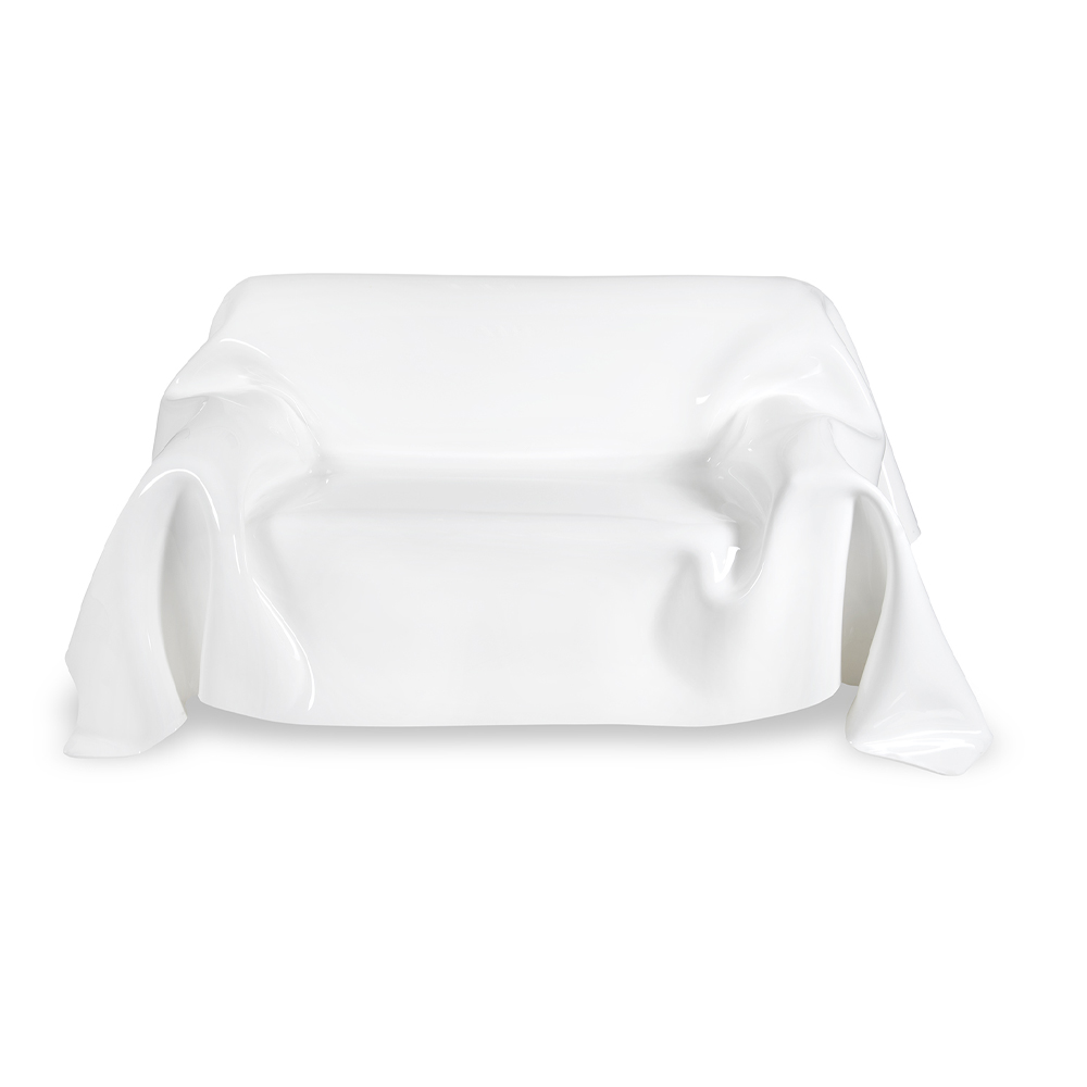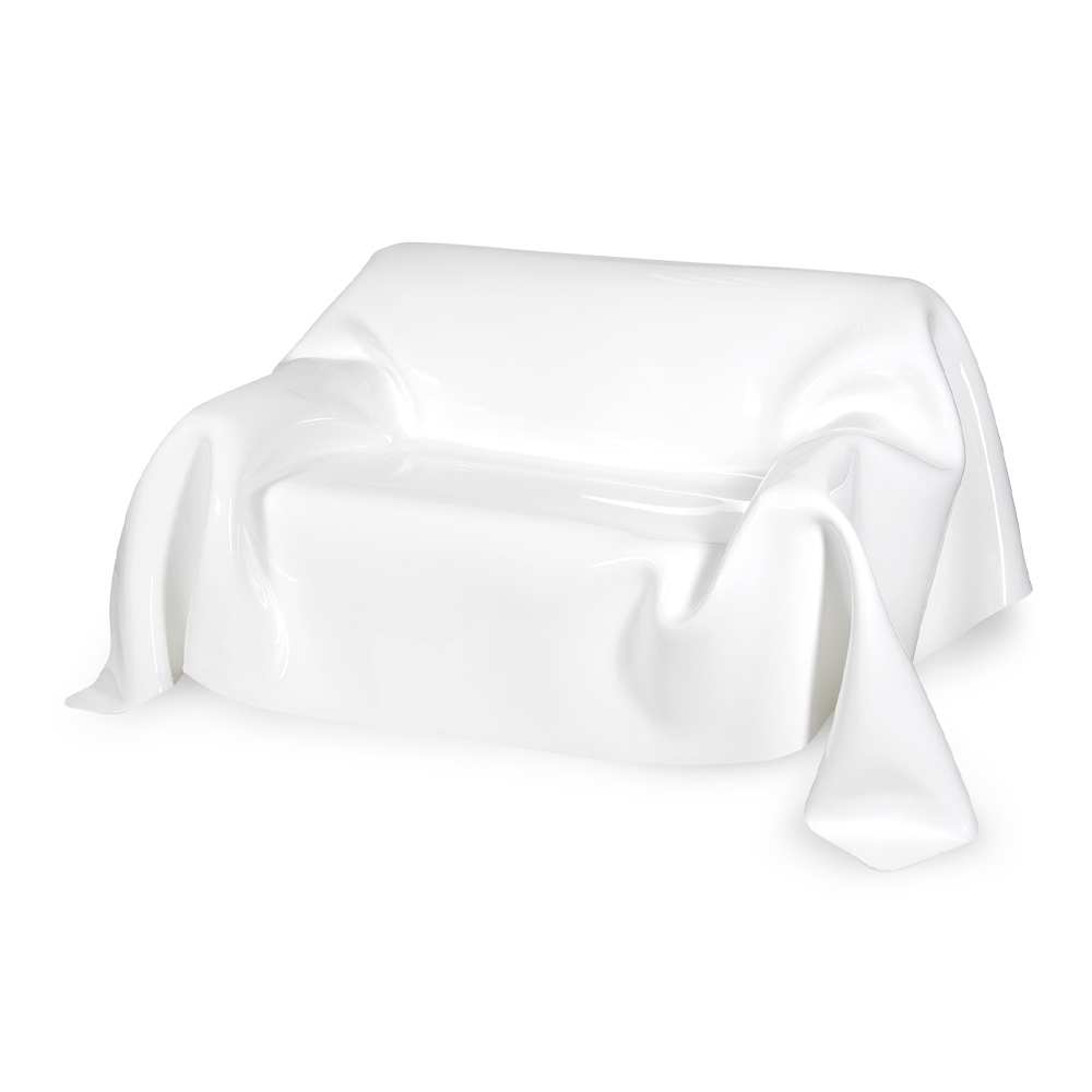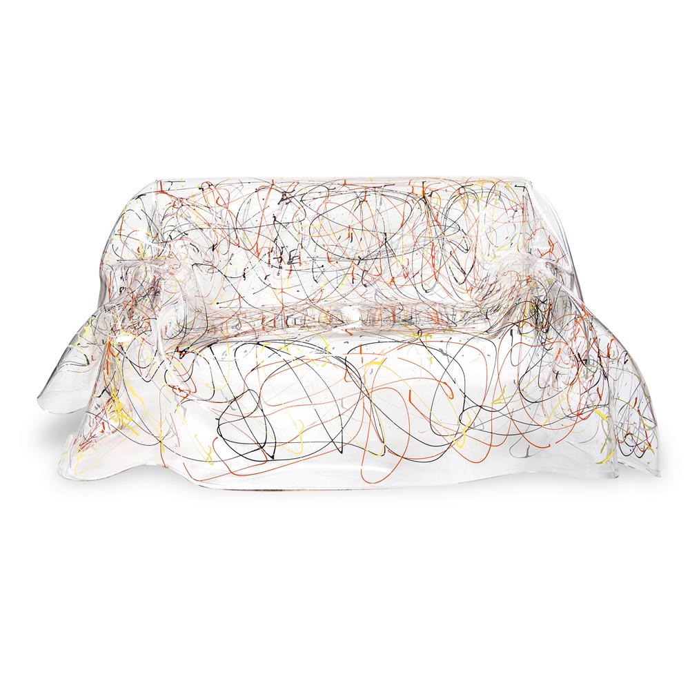 Moderní designová pohovka v bílém nebo vícebarevném plexiskle, vyrobená v Itálii.