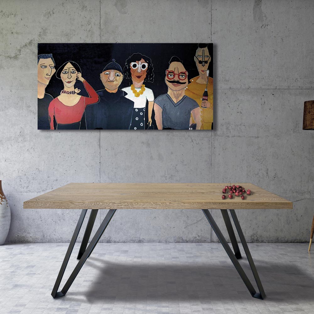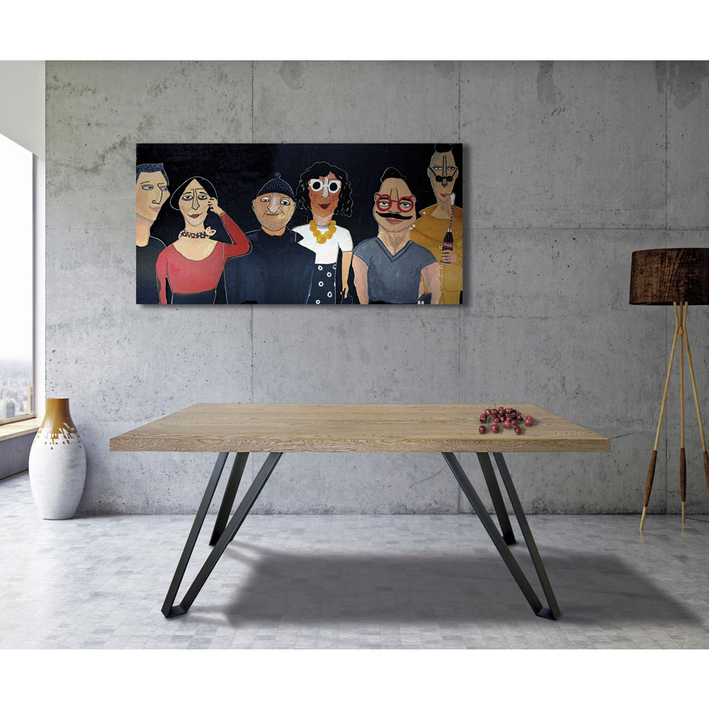 Dřevěný stůl pokovený dýhovaným dubem s vroubkováním a kovovou podnoží Made in Italy.