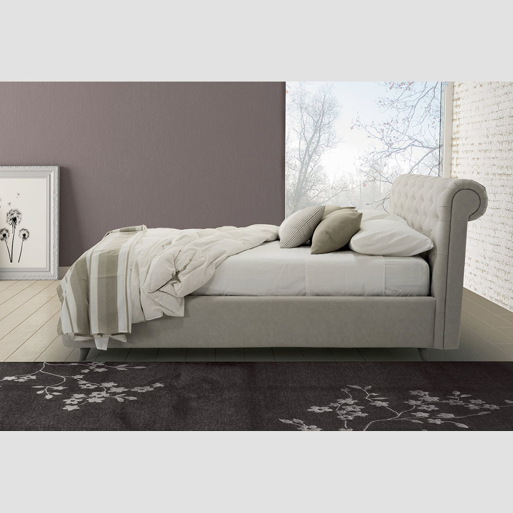 Luxusní čalouněná manželská postel, ručně vyrobená v Itálii s látkovým nebo ekokoženým boxem.