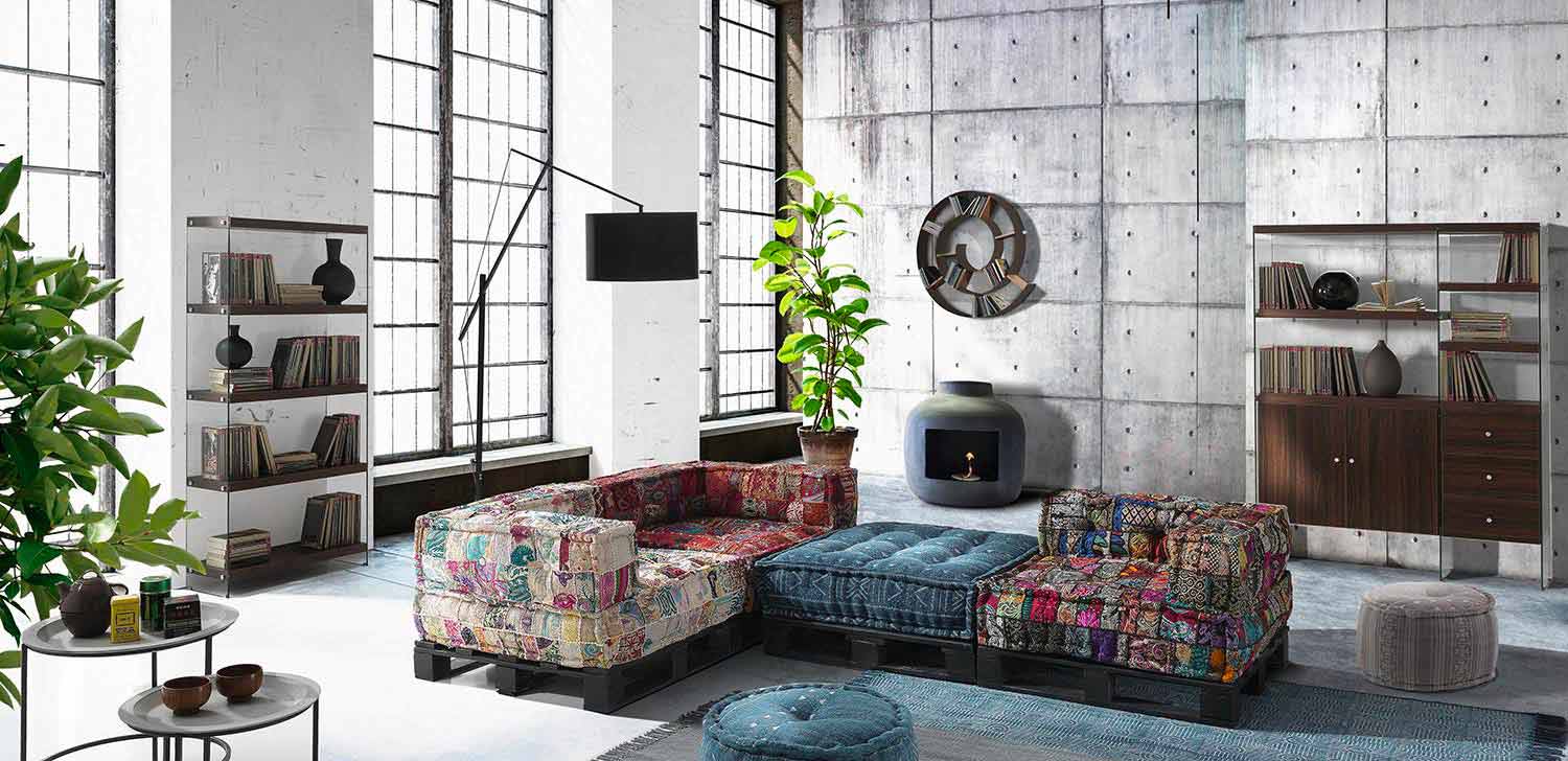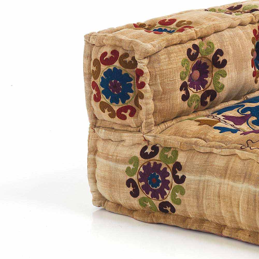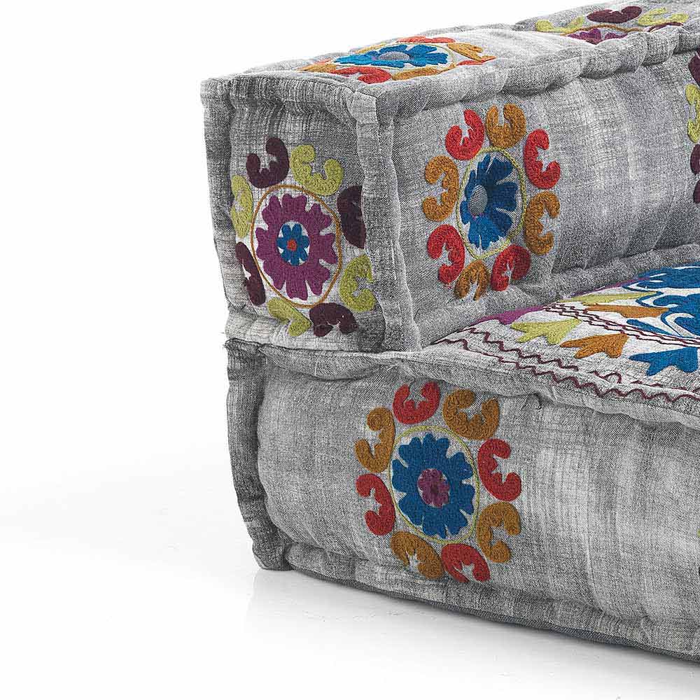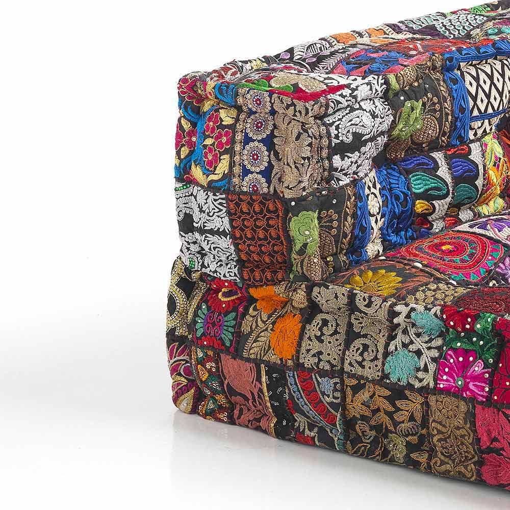 Polstrovaná dvoumístná etnická pohovka v Patchwork Fabric a Wood - Fiber