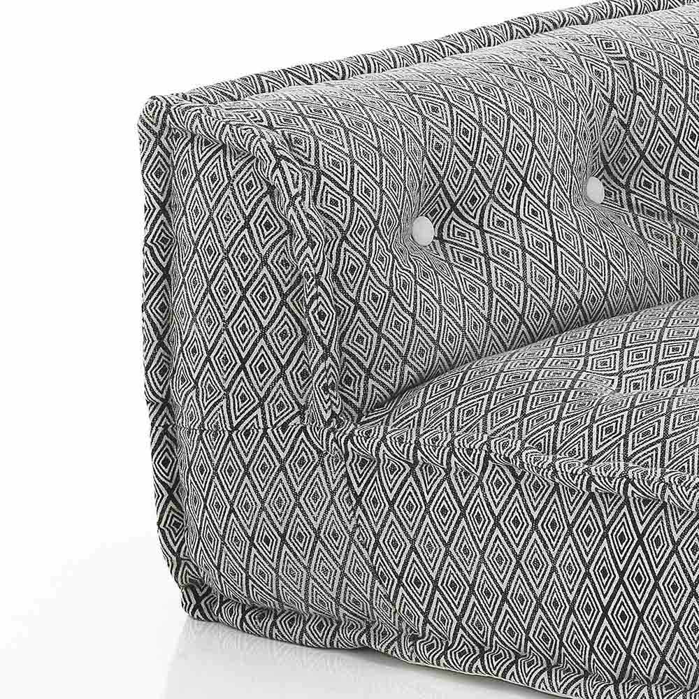 Čalouněná pohovka v mozaice a černé nebo bílé malované dřevo etnického designu.