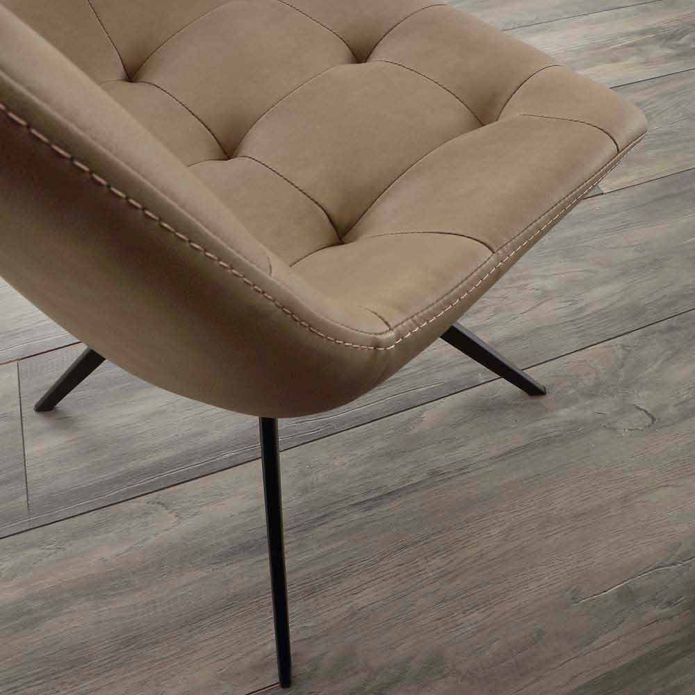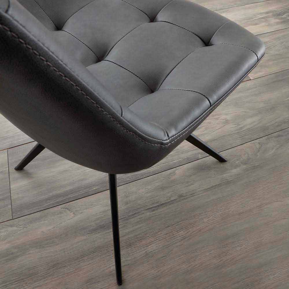 Maximální pohodlí zajištěné na této židli vyrobené z černě lakovaného kovového rámu a sedadla čalouněného buď látkou nebo eko nabukem je k dispozici ve čtyřech různých barvách: