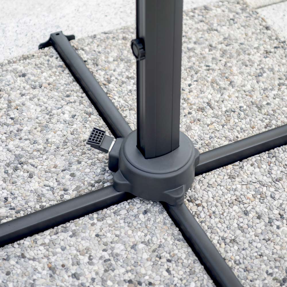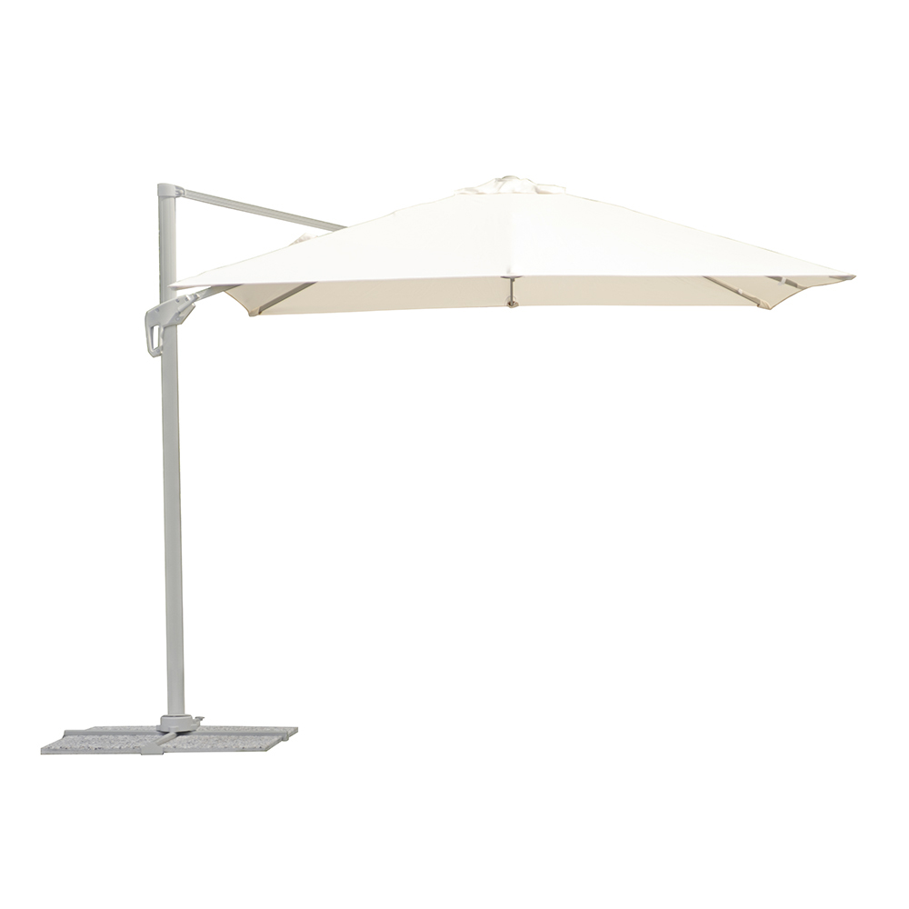 Je vybaven větruodolným systémem a kovovou křížovou základnou a zaručuje stabilitu i v největrnějších dnech. Je ideální do zahrad, na terasy a u bazénů, ale i do venkovních prostor v restauracích, hotelech nebo lounge barech.