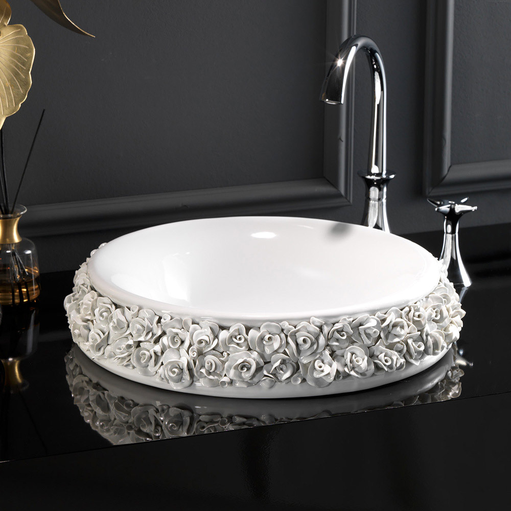 Ručně lité porcelánové umyvadlo s okvětními lístky Made in Italy