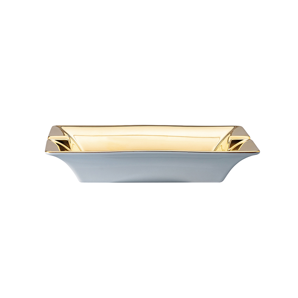 Popelník Jungle Animalier od Versace , vyrobený z jemného porcelánu , je symbolem odvážné elegance a exotického luxusu. Tento mimořádný kousek se vyznačuje zvířecím a tropickým designem, obohaceným o ikonický symbol Medúzy uprostřed, orámovaný zářícím zlatým sluncem. Zcela zlatý okraj dodává nádech opulence a rafinovanosti a přeměňuje každodenní předmět ve skutečné umělecké dílo.