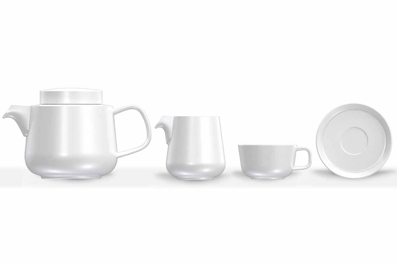 Čajová souprava s šálky, podšálky, konvicí a konvicí na mléko ve skandinávském designovém porcelánu 14 kusů.