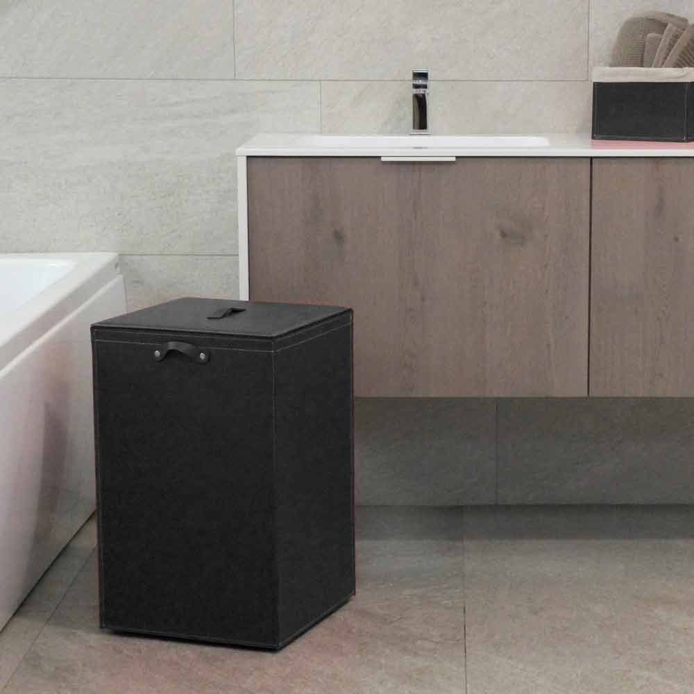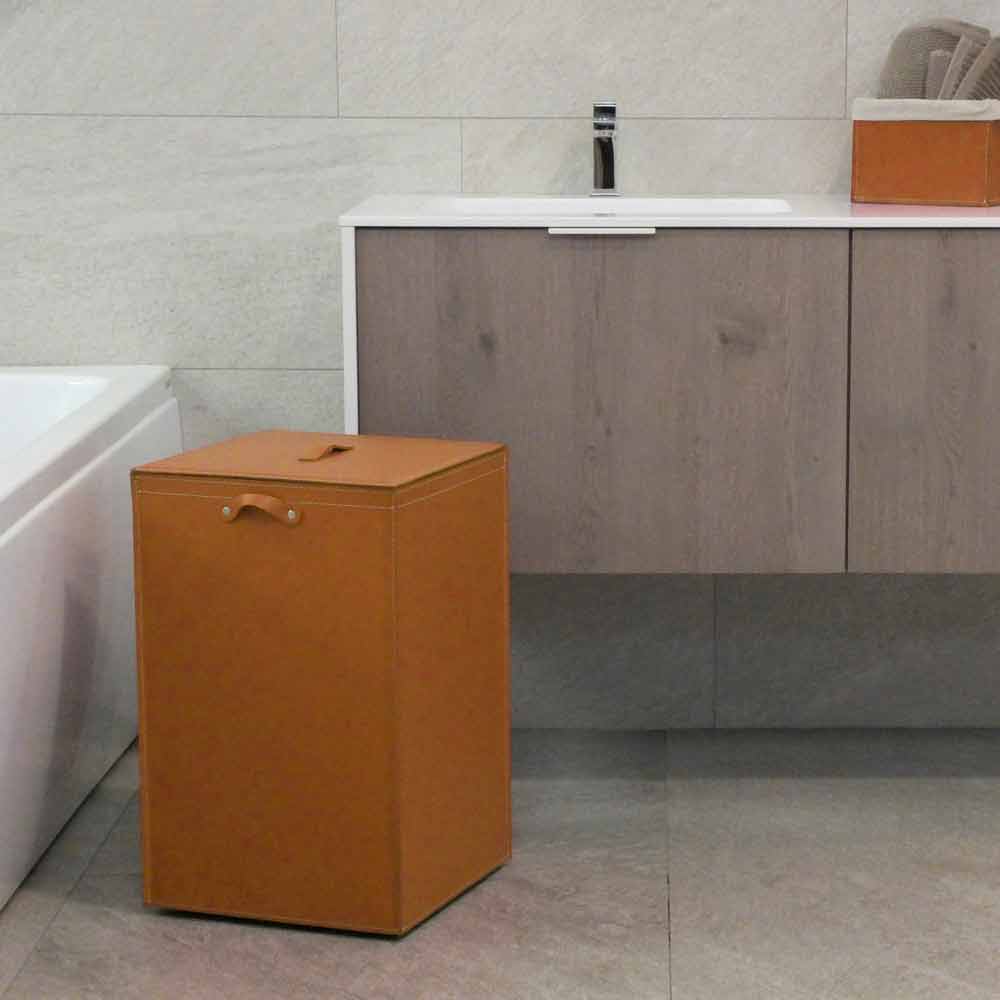 Prádelní koš na čtvercovou základnou Leather David, made in Italy