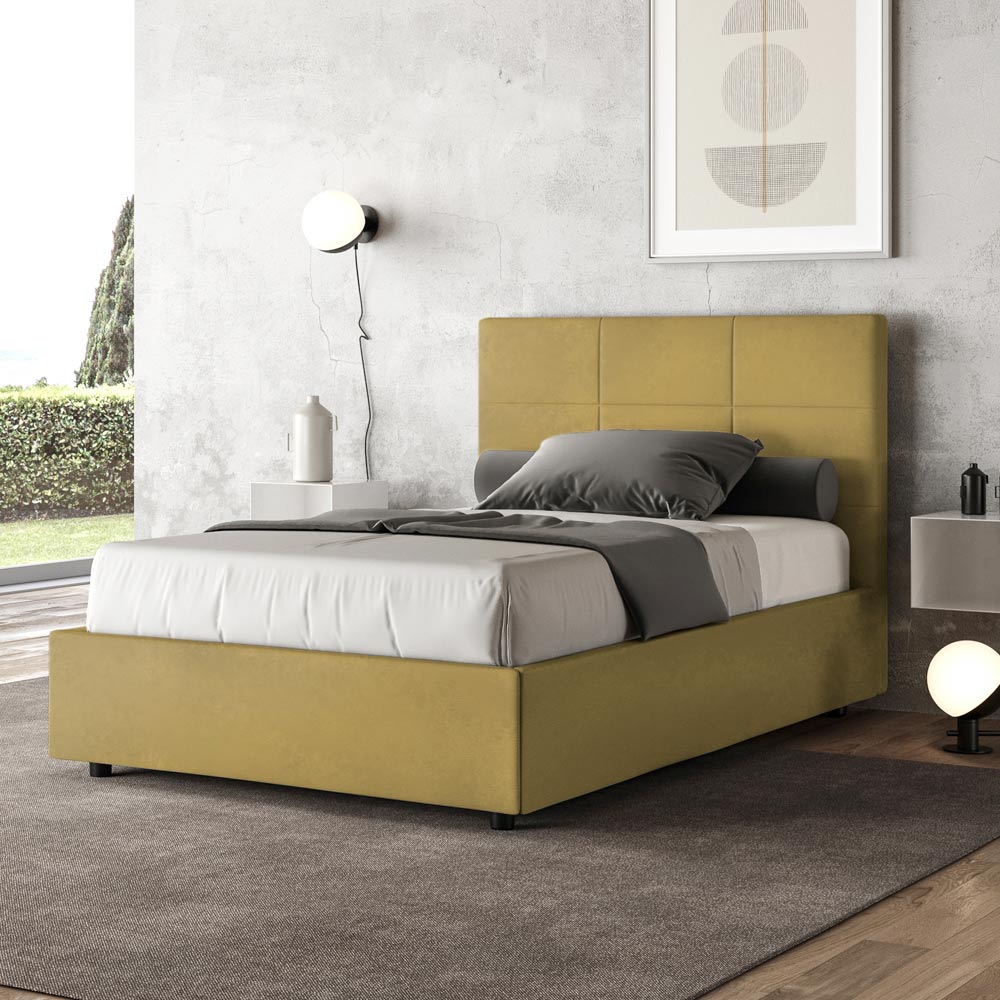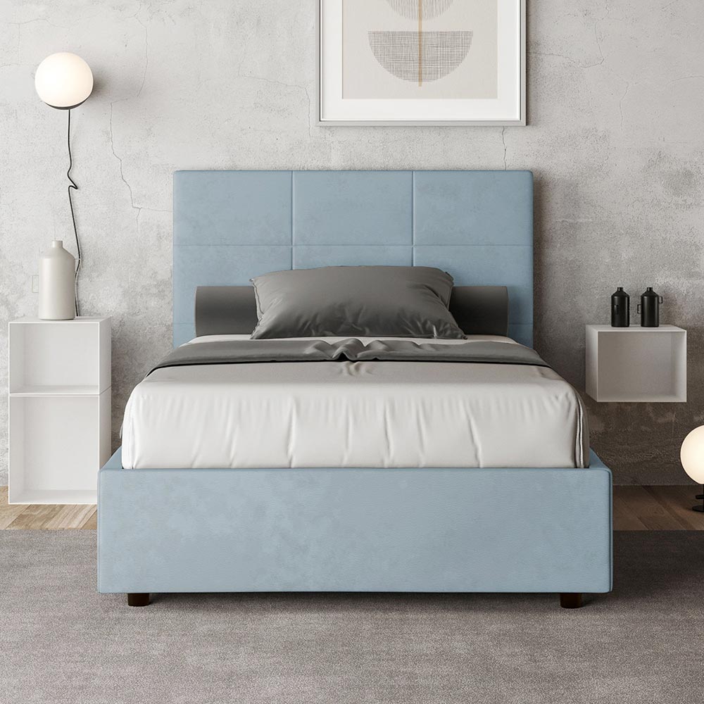Polstrovaná manželská postel o rozměrech 120x200 cm vyrobená z dřevotřískových panelů a potažená mikrovláknem , kompletně vyrobená v Itálii. Tato postel s polstrovaným rámem je dokonalým příkladem toho, jak lze v jednom kusu nábytku spojit eleganci a pohodlí. Tento model se vyznačuje čelem postele obohaceným oObdélníkové geometrické vzory . Potaženo mikrovláknem se snadno udržuje v čistotě: pro rychlé a účinné čištění stačí použít hadřík z mikrovlákna.