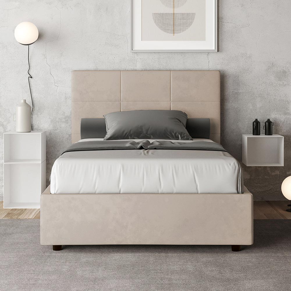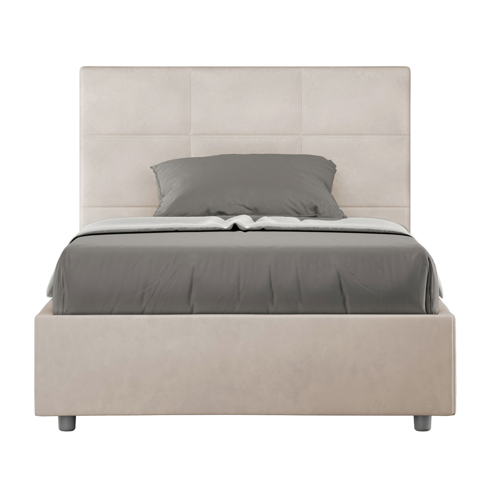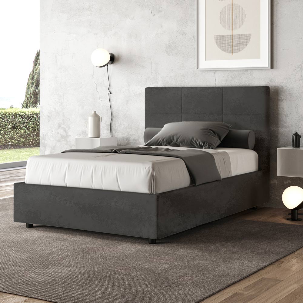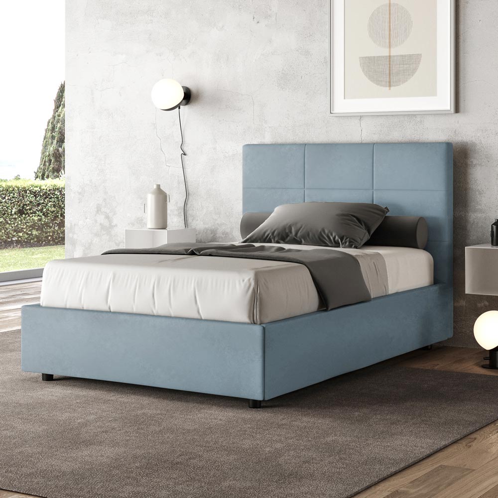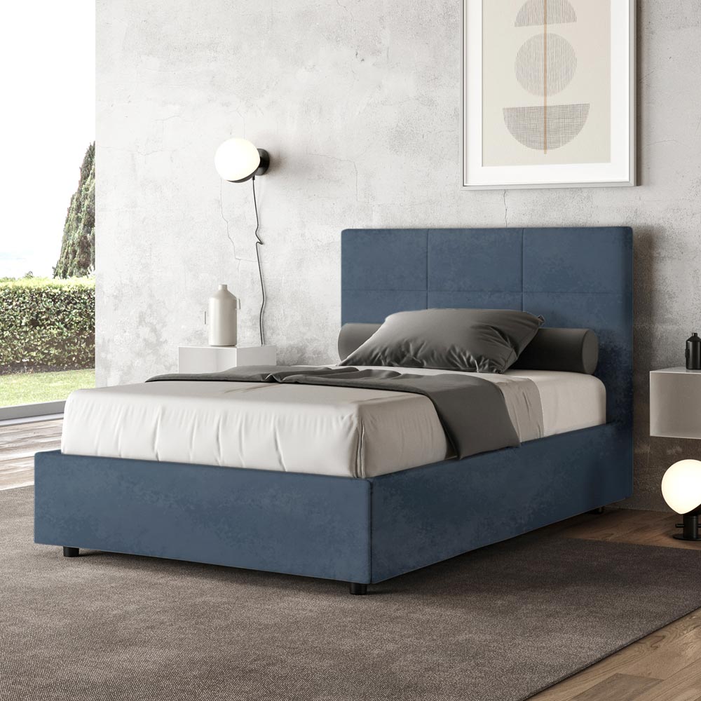 Francouzská postel 140x200 cm s čalouněním z melaminových panelů a potahem z mikrovlákna , kompletně vyrobená v Itálii. Tato postel s polstrovaným rámem je dokonalým příkladem toho, jak lze v jednom kusu nábytku spojit eleganci a pohodlí. Tento model se vyznačuje čelem postele obohaceným oObdélníkové geometrické vzory . Potaženo mikrovláknem se snadno udržuje v čistotě: pro rychlé a účinné čištění stačí použít hadřík z mikrovlákna.