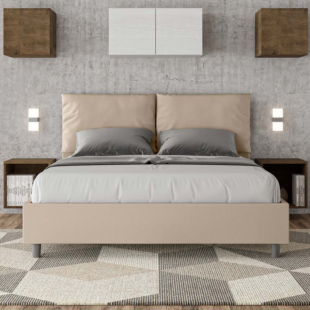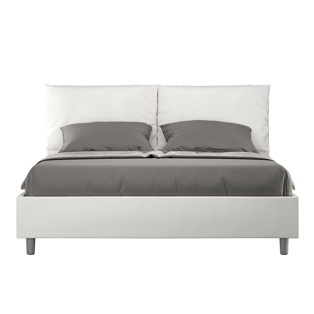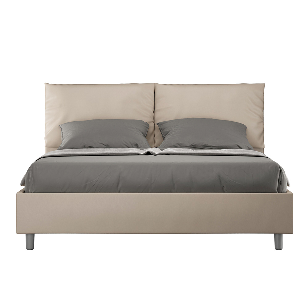 Čalouněná manželská postel o rozměrech 160x200 cm vyrobená z dřevotřískových panelů a potažená imitací kůže , kompletně vyrobená v Itálii. Tato manželská postel s čalouněným rámem dokonale ztělesňuje výhody čalouněné postele: pohodlí, moderní styl, funkčnost a efektivní využití prostoru . Postel s širokým polstrovaným čelem nabízí relaxační koutek ideální pro čtení nebo sledování televize a vylepší tak vaši ložnici. Elegantní a stylová postel je čalouněná umělou kůží, takže čištění je rychlé a snadné: stačí ji otřít hadříkem z mikrovlákna, aby zůstala zářivá.