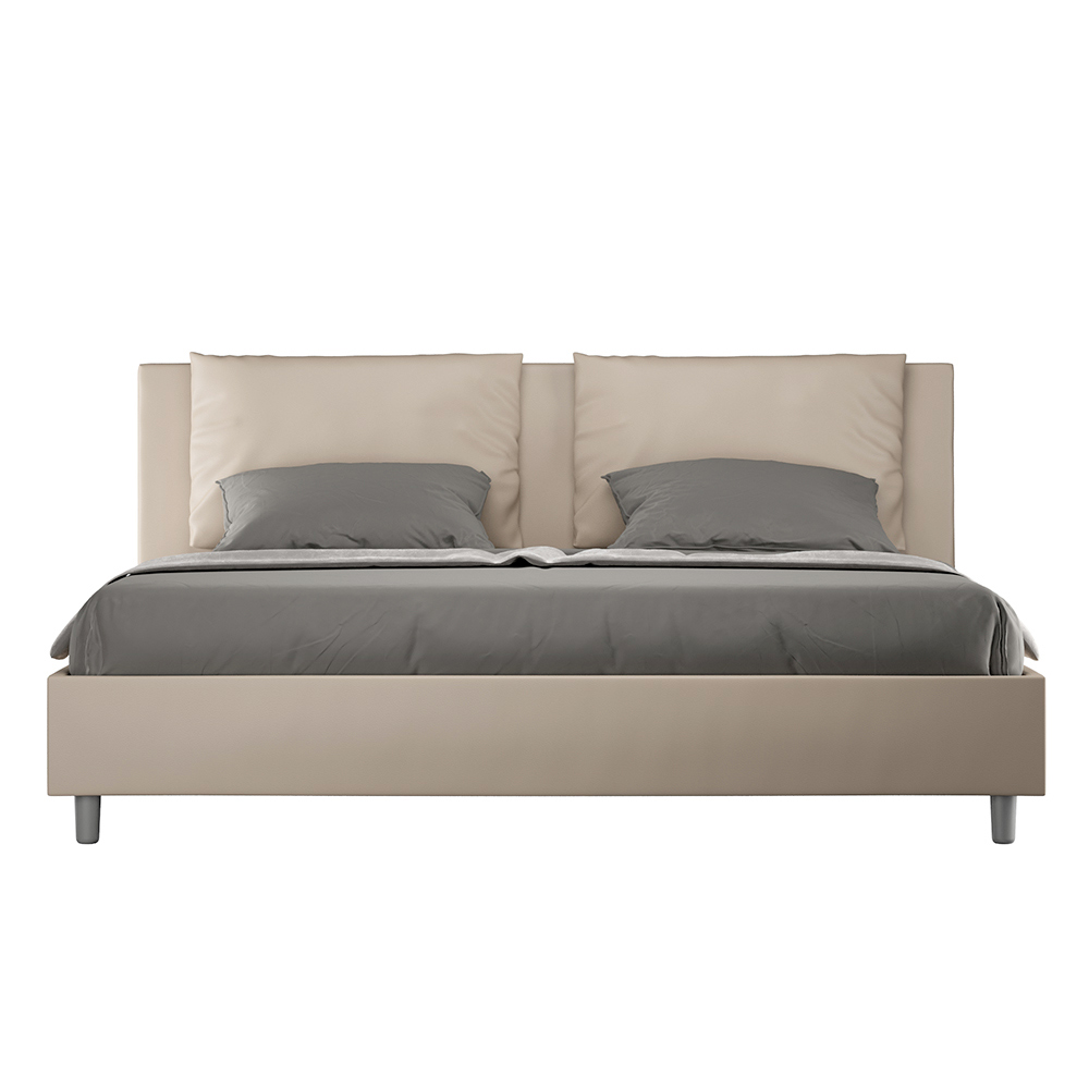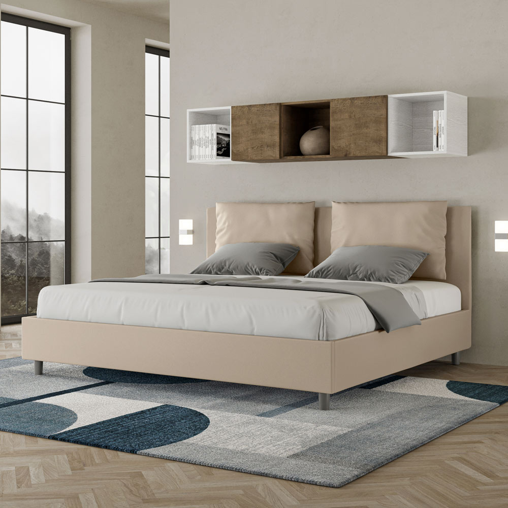 Velká postel velikosti Super King o rozměrech 200x200 cm, polstrovaná z melaminových panelů a potažená imitací kůže , vyrobená výhradně v Itálii. Tato super king size postel s čalouněným rámem dokonale ztělesňuje výhody čalouněné postele: pohodlí, moderní styl, funkčnost a efektivní využití prostoru . Tato postel s širokým polstrovaným čelem nabízí relaxační koutek ideální pro čtení nebo sledování televize a vylepší tak vaši ložnici. Tato elegantní a stylová postel je čalouněna umělou kůží, takže čištění je rychlé a snadné: stačí ji otřít hadříkem z mikrovlákna, aby zůstala zářivá.