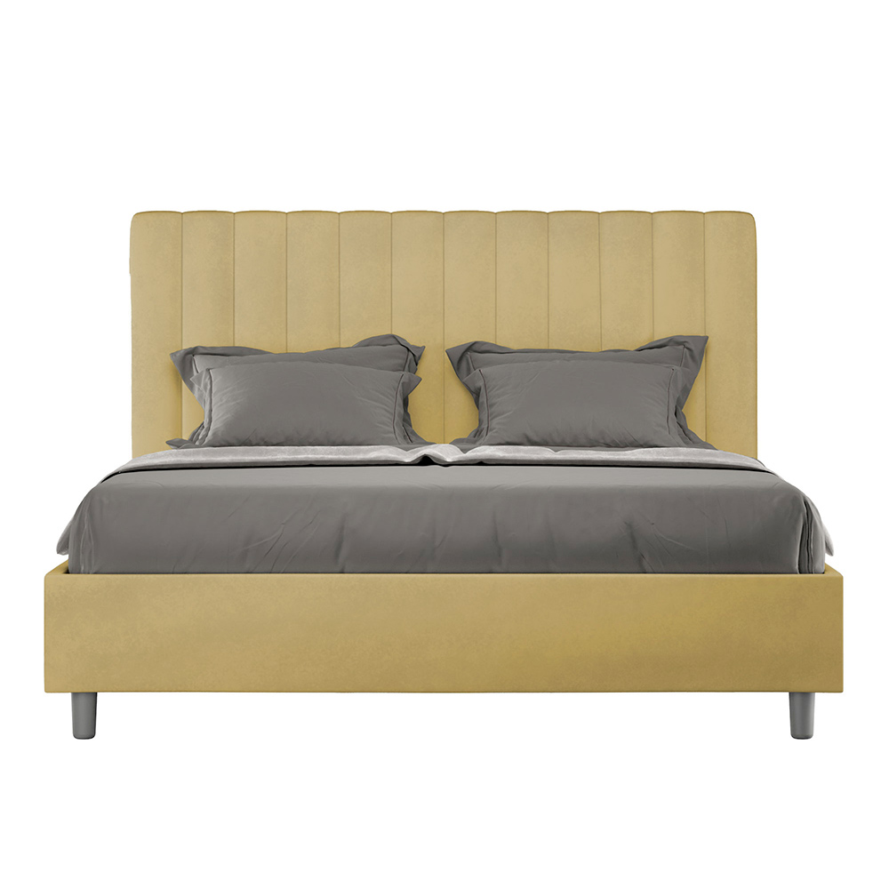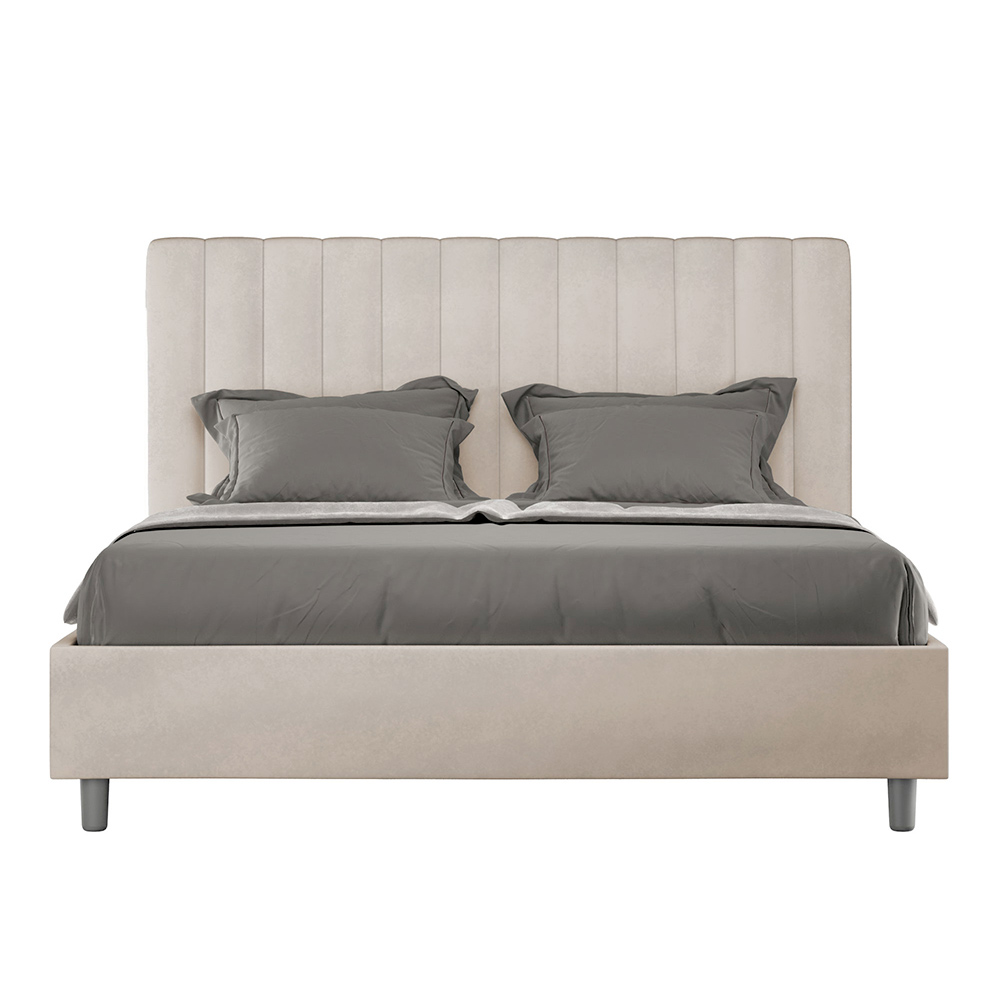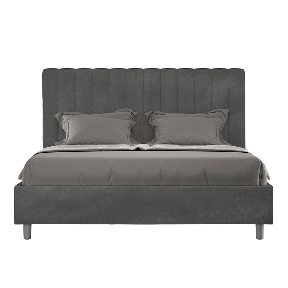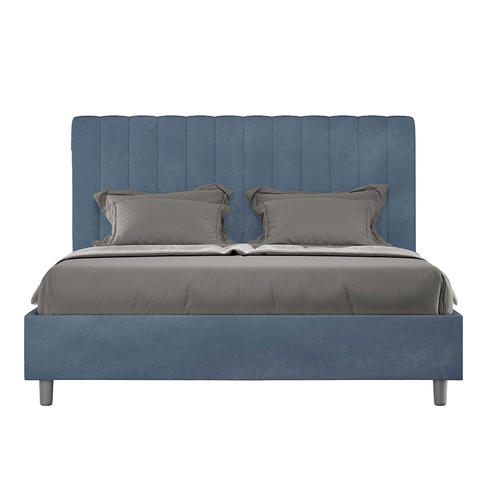 Čalouněná manželská postel o rozměrech 160x200 cm vyrobená z dřevotřískových panelů a potažená mikrovláknem , kompletně vyrobená v Itálii. Tato manželská postel s čalouněným rámem je ideální pro ty, kteří hledají výrazný kousek postele, aniž by byl příliš dramatický. Postel se pyšní minimalistickým čelem s jemným prošívaným efektem symetrických svislých linií , které se krásně hodí do jakéhokoli prostředí, ať už moderního nebo klasického.