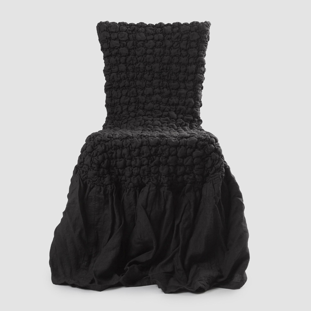 Potah na židli z reliéfního světlého plátna s bílou, černou, starým máslem nebo minerálem vyrobeným v Itálii.