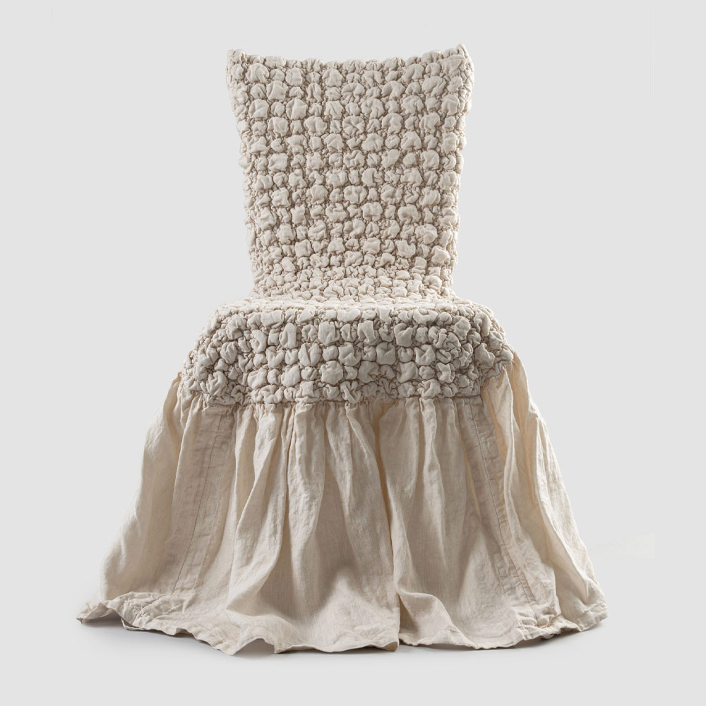 lehkým reliéfním plátěným potahem na židli s flounce, který je k dispozici v různých povrchových úpravách