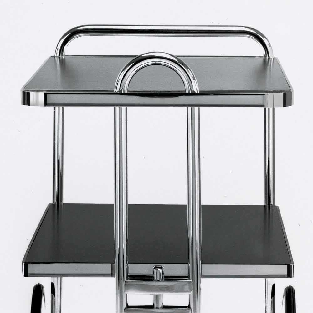Chromovaný ocelový vozík na potraviny s černými laminátovými policemi Made in Italy.