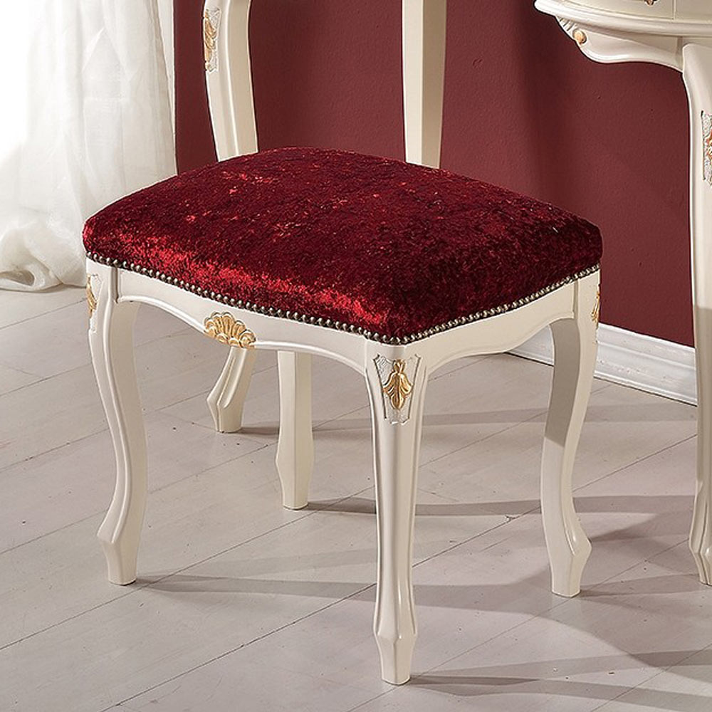 Pouf klasického stylu z ořechového dřeva a tkaniny Made in Italy.