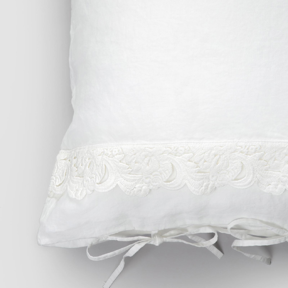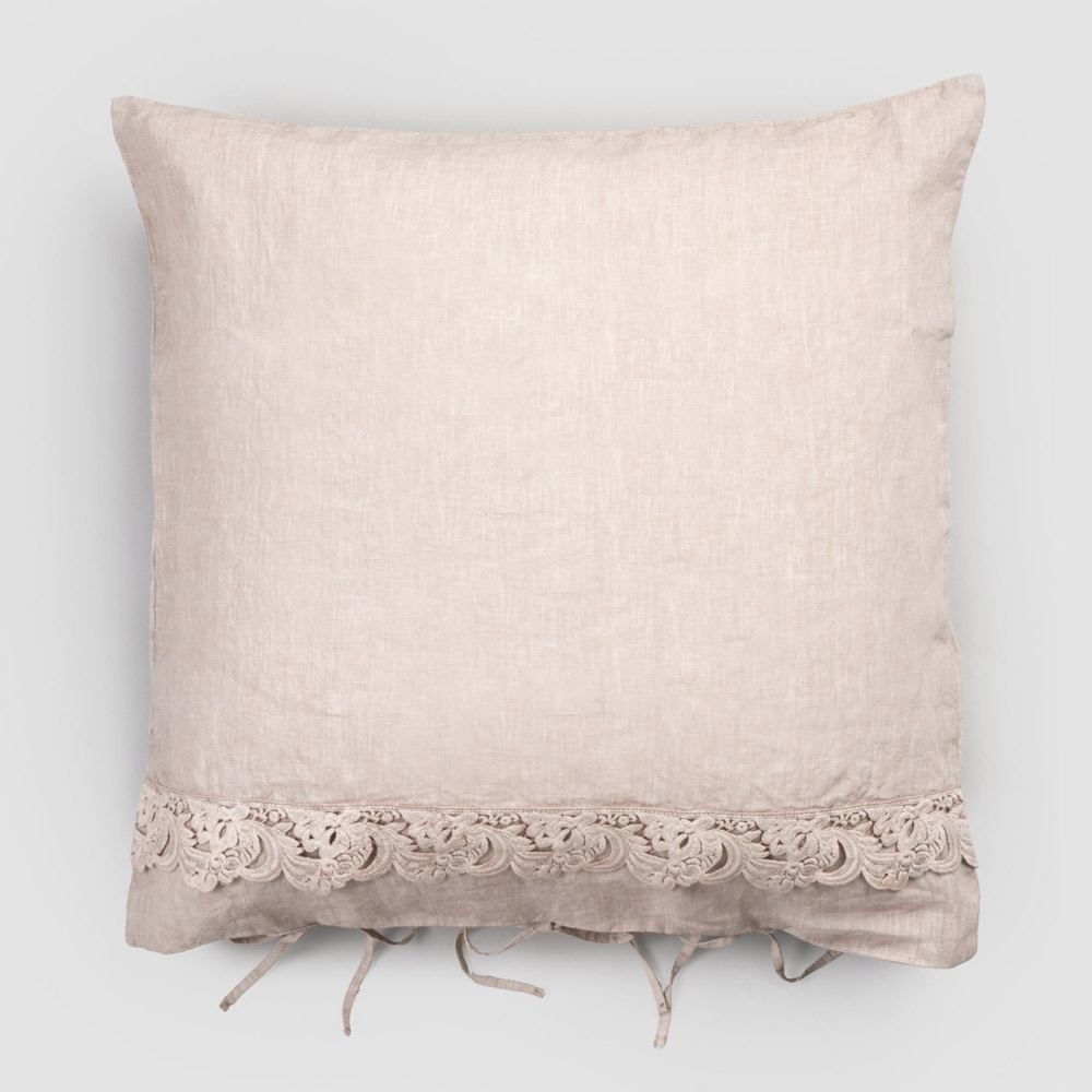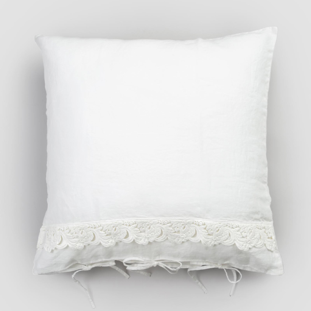 Čtvercový povlak na polštář z čistého lnu s harmonickou krajkou a knoflíky se tkaničkami, 2 barvy vyrobené v Itálii.