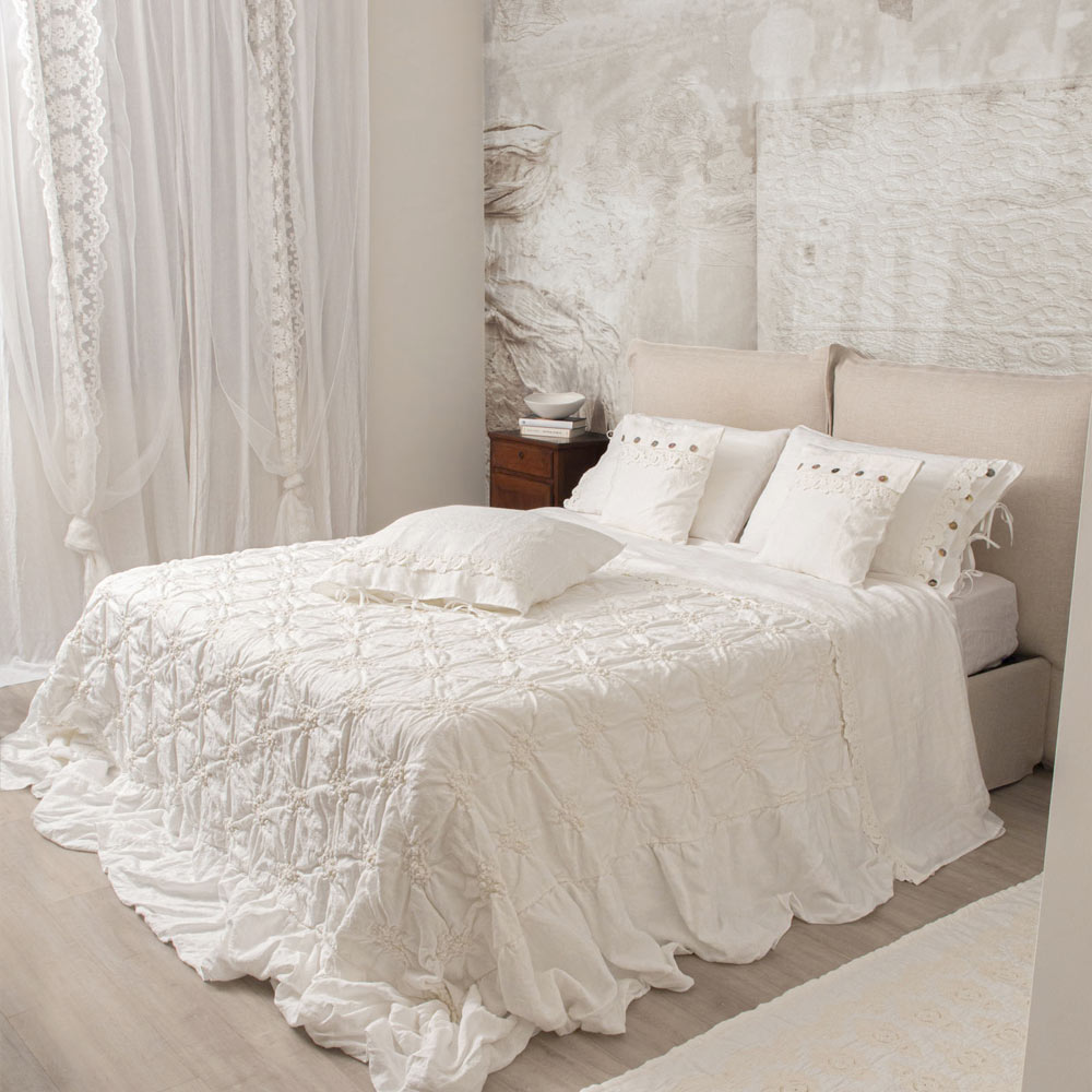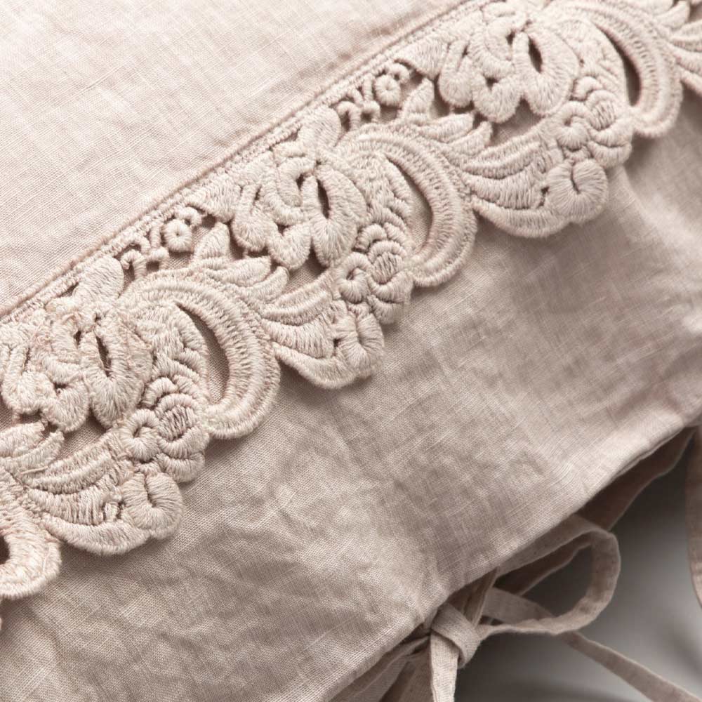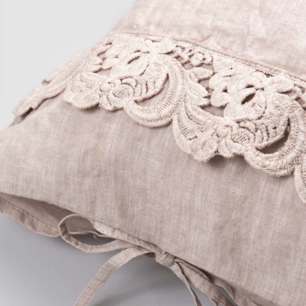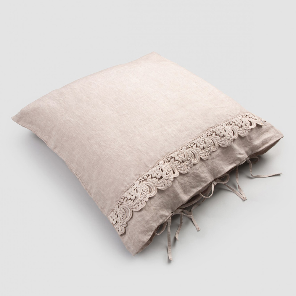 Čtvercový povlak na polštář z čistého lnu s harmonickou krajkou a knoflíky se tkaničkami, 2 barvy vyrobené v Itálii.