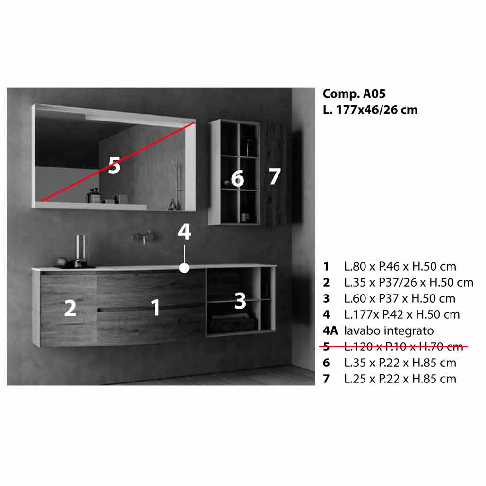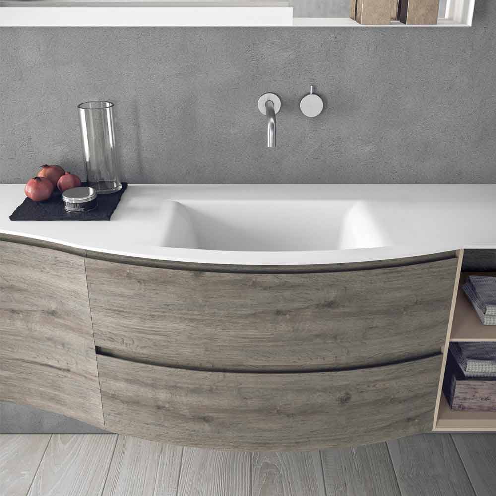 Závěsná designová kompozice, moderní a závěsný koupelnový nábytek s vestavěným umyvadlem, Made in Italy.