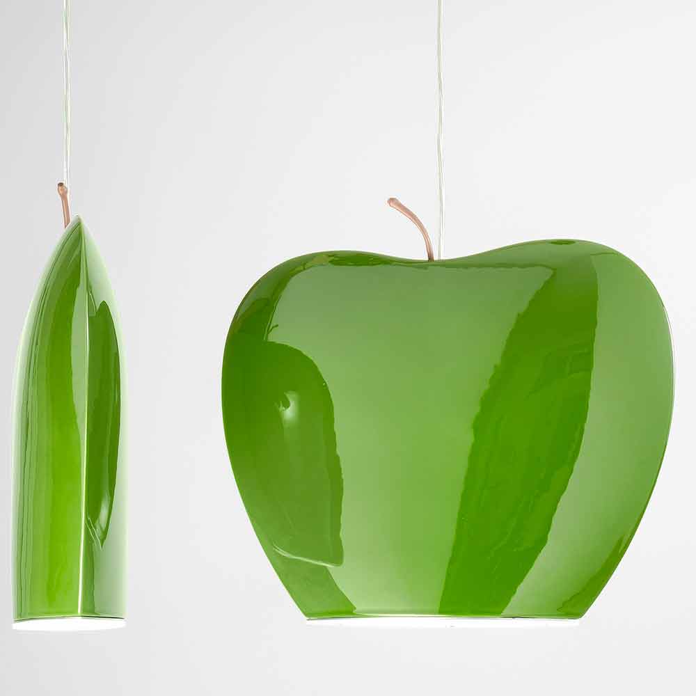 Osvětlení s výstředním designem: keramické zavěšení ve tvaru jablka, kolekce Fruits Aldo Bernardi.