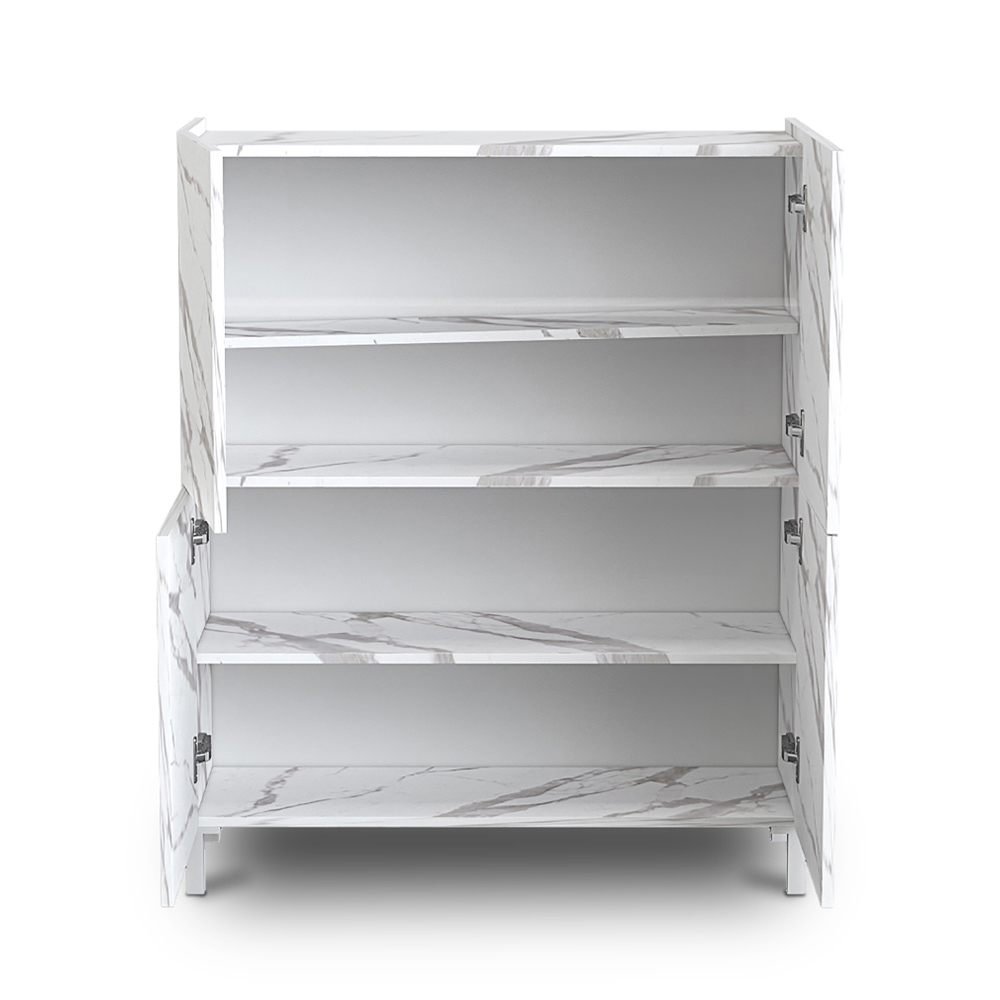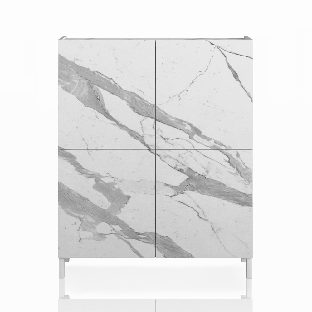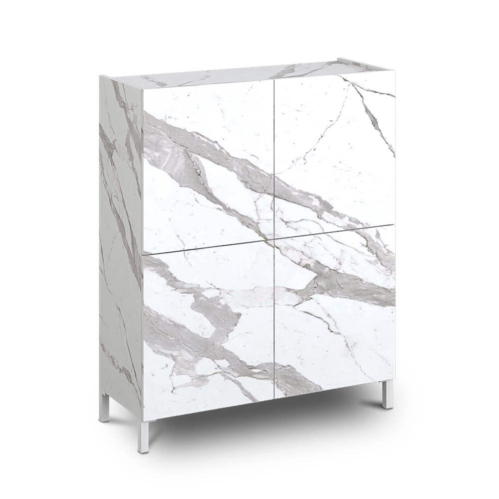 vysokou odolnost a kvalitu. Dostupné povrchové úpravy:- melaminový povrch v matném bílém mramoru Calacatta