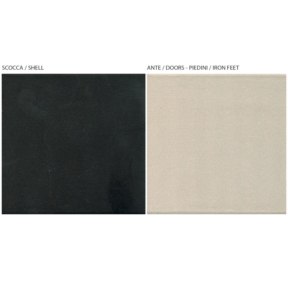 skořepiny v barvě dřevěného uhlí, vnitřní police a dvířka z MDF s povrchovou úpravou niklu, zadní panel z překližky a