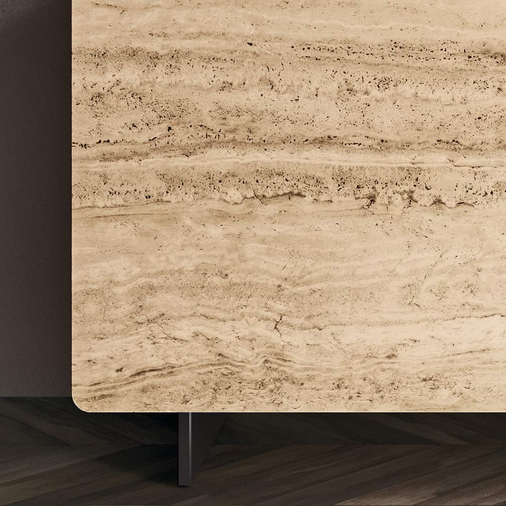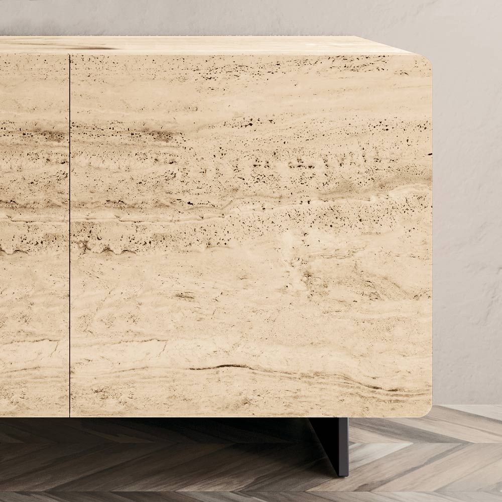 travertinovým mramorovým povrchem, zcela vyrobeno v Itálii. Výrobek je součástí nové řady moderních výrobků vyrobených s respektem k přírodě. Tento elegantní příborník se vyznačuje funkčností a vysokou kvalitou italského řemesla.