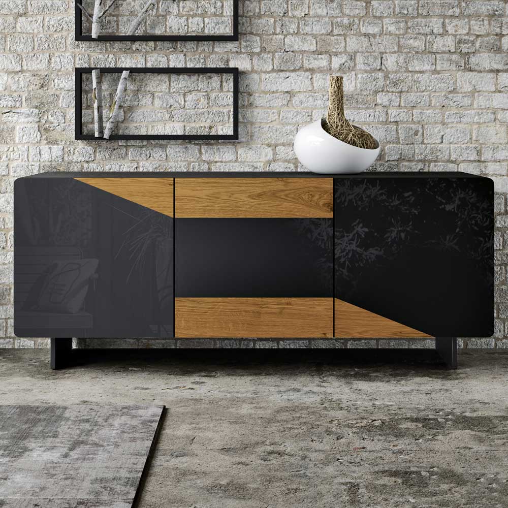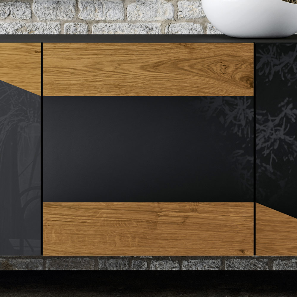 venkovského vázaného dubu , zcela vyrobeno v Itálii. Výrobek je součástí nové řady moderních výrobků vyrobených s respektem k přírodě. Tento elegantní příborník se vyznačuje funkčností a vysokou kvalitou italského řemesla.