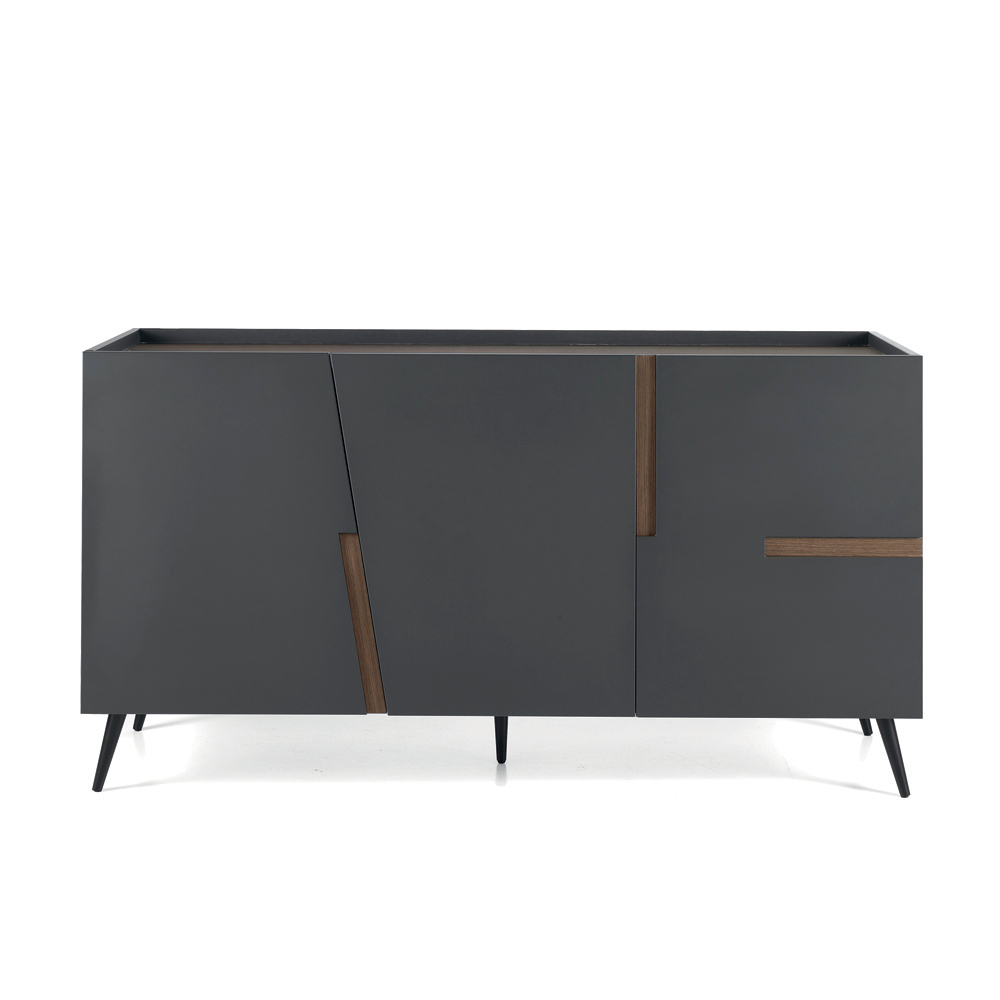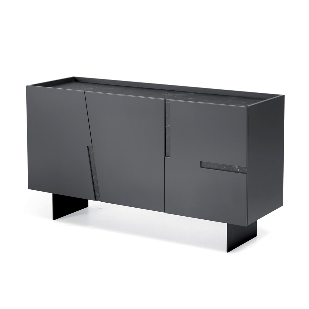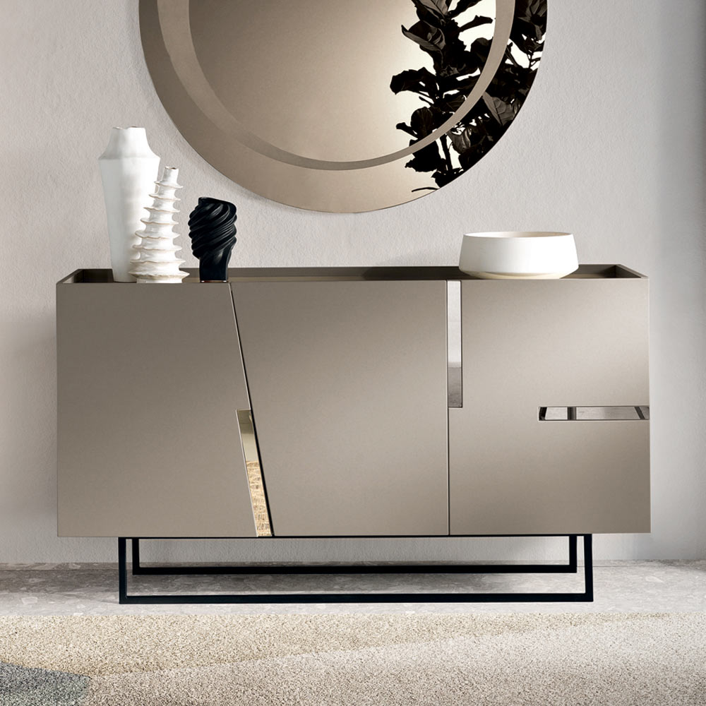 Lakovaná kovová základna , dostupná v různých konfiguracích, zefektivňuje konstrukci a dodává jí vizuální lehkost a moderní nádech. Díky rovnováze mezi estetikou a funkčností je tato příborník ideálním řešením pro stylové uspořádání prostorů.