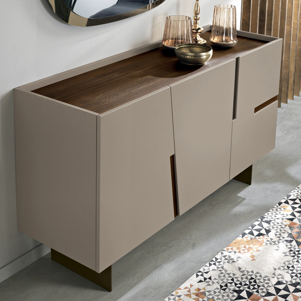 Elegantní designová příborník vyrobená v Itálii , ideální pro stylové vybavení vašeho obývacího pokoje nebo jídelny . Jeho moderní design vyniká čistými liniemi a minimalistickými povrchy, které harmonicky zapadají do moderních a sofistikovaných prostor.