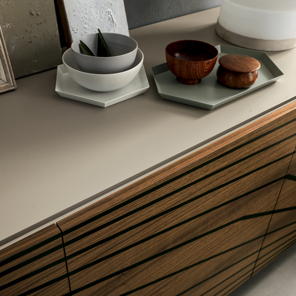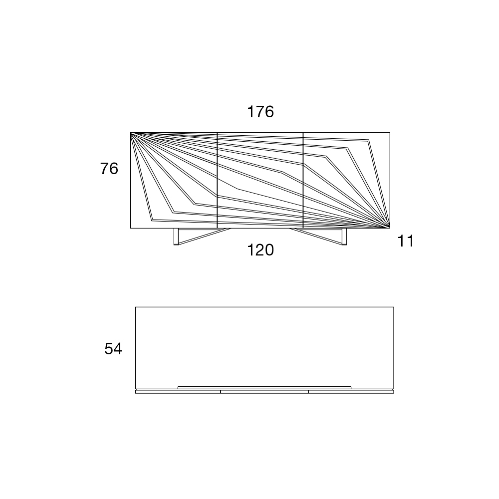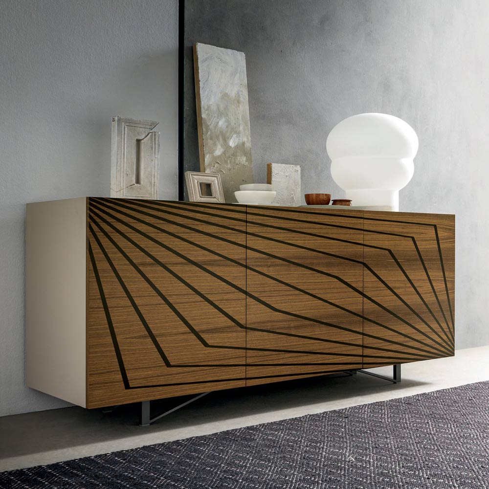 3dveřový lakovaný MDF příborník se sítotiskovými vložkami, design vyrobený v Itálii.