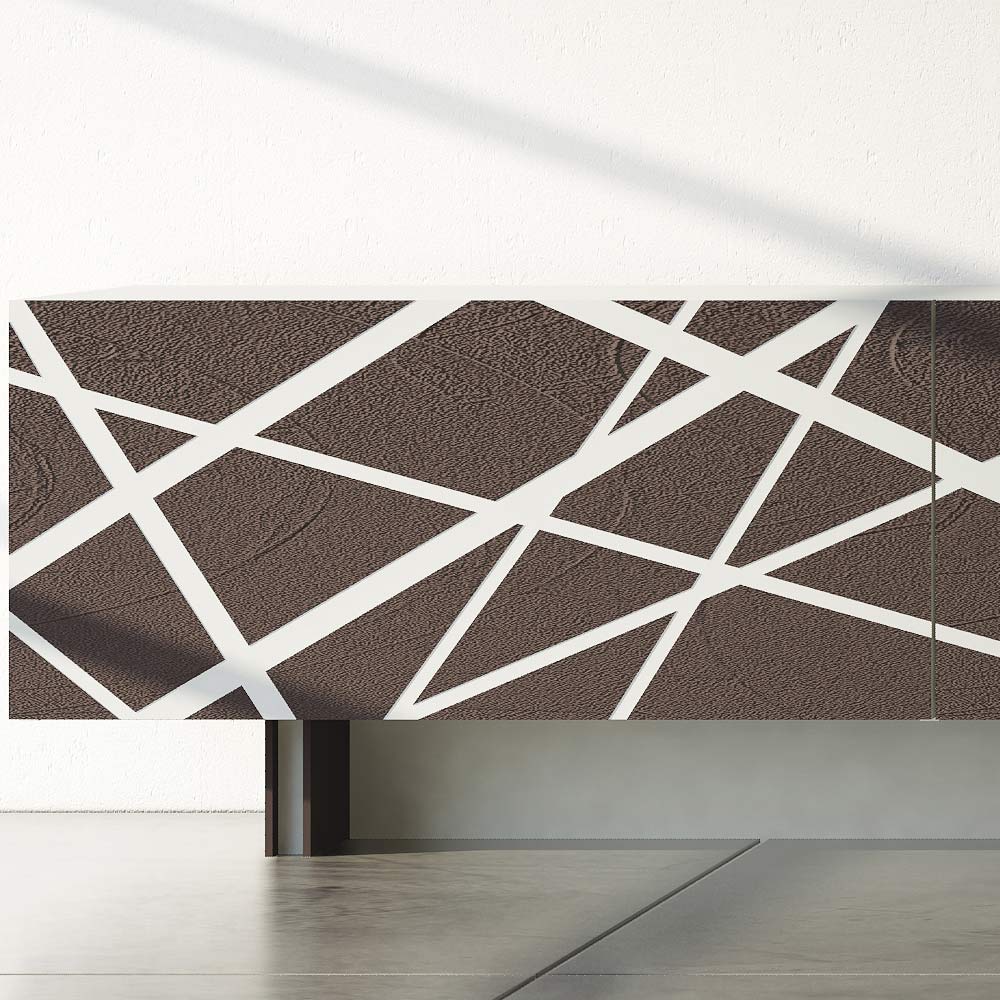 Příborník do obývacího pokoje s MDF strukturou z hliněného melaminu uvnitř a sopečně hnědým matným lakem na vnější straně. Systém otevírání má 2 koplanární posuvné dveře a je amortizován při otevírání a zavírání, aby byla zaručena dokonalá funkčnost a praktičnost . Vnitřní police jsou vyjímatelné a ze skla o tloušťce 8 mm, nohy jsou kovové . Tento produkt je plný vkusu a designu díky spojení různých materiálů, jeho elegantní a rafinované povrchové úpravě a zdobený dekorací na dveřích s bílým reliéfem. Všechny materiály použité na konstrukci nabízejí vysokou kvalitu a odolnost v průběhu času, což produktu dodává jedinečný a nezapomenutelný nádech.