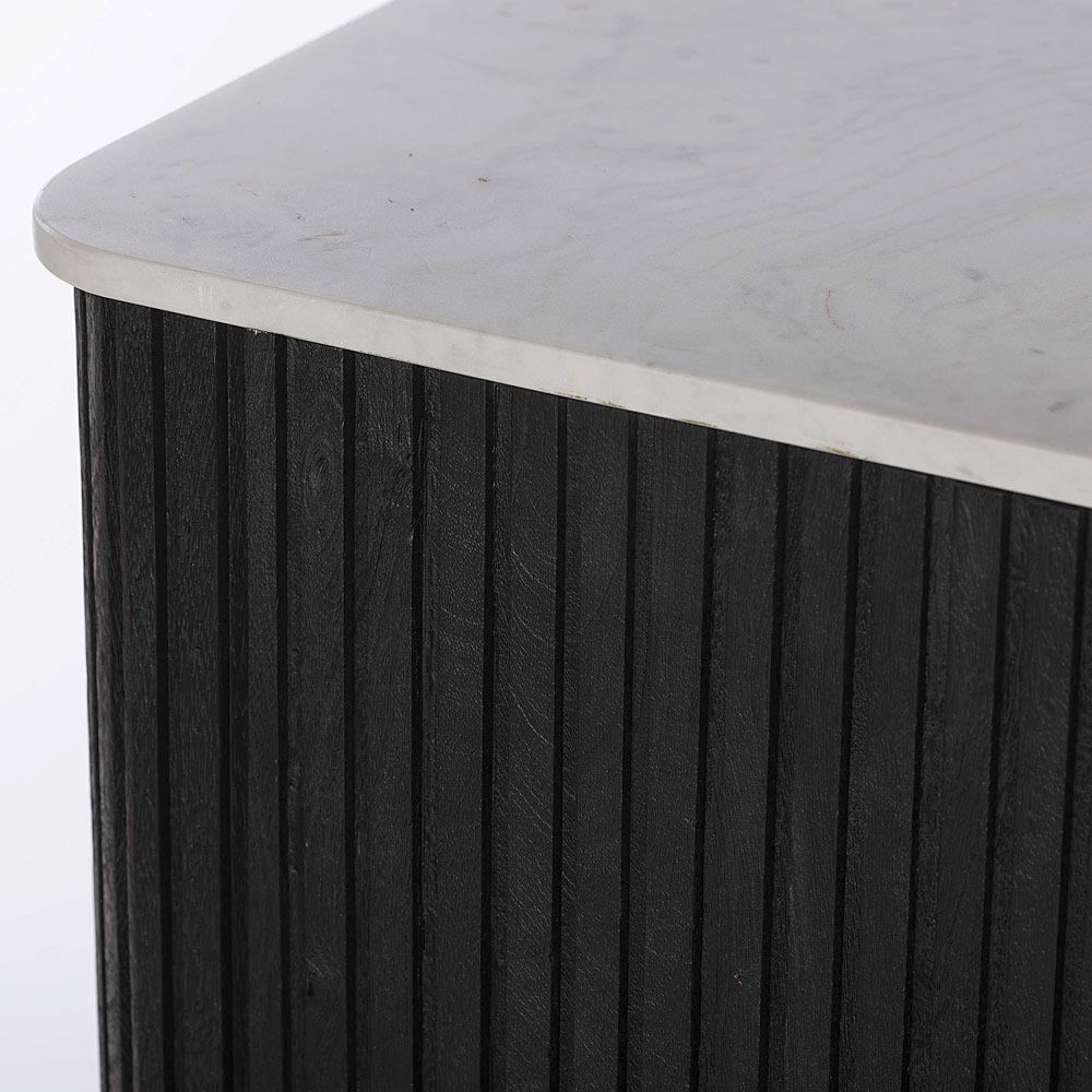 Tato elegantní úložná skříňka v sobě spojuje moderní design s nadčasovou sofistikovaností , díky čemuž se stane dokonalým doplňkem každého sofistikovaného prostoru. Rám z černého rýhovaného dřeva vytváří fascinující trojrozměrný efekt, který okamžitě upoutá pozornost a dodá kusu estetickou hloubku.