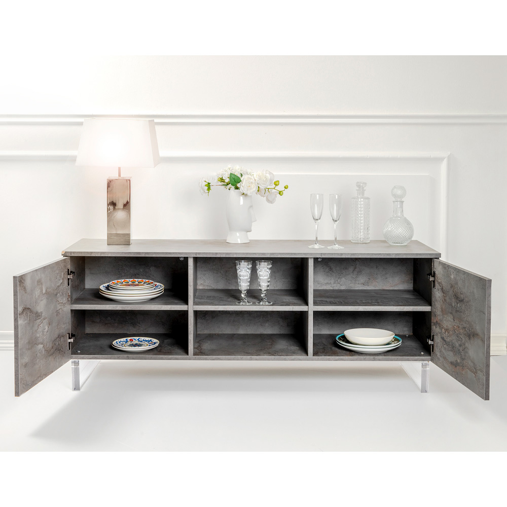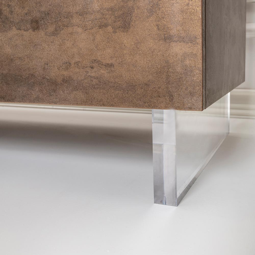 Tento příborník, zavěšený na průhledných plexisklových nohách, nabízí iluzi vznášení se v prostoru a přináší jedinečnou a překvapivou vizuální lehkost . Otevřete jeho pantové dveře a odkryjte prostorný interiér s policemi čekajícími na uložení knih, předmětů a upomínkových předmětů, vše organizované s maximální účinností.