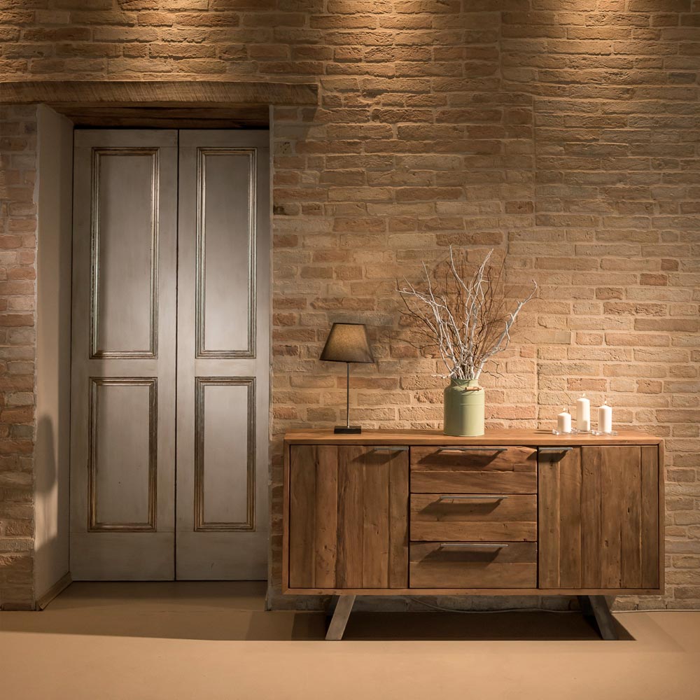 Tento zařizovací set je doslova unikátní právě tím, že ztělesňuje svéráznou historii žité hmoty. Zpracování probíhá z větší části podle řemeslných postupů . Každý škrábanec a nedokonalost, každá jizva na dřevě svědčí o originalitě minulosti, která nabývá nového života. Tropické dřevo legálně recyklované ze starých artefaktů, lodí a opuštěných budov je odborně ošetřeno a kartáčováno, aby znovu získalo důstojnost a lesk. Tento produkt kombinuje podstatu rustikálního vkusu s tvary současného designu as některými detaily industriálního stylu .