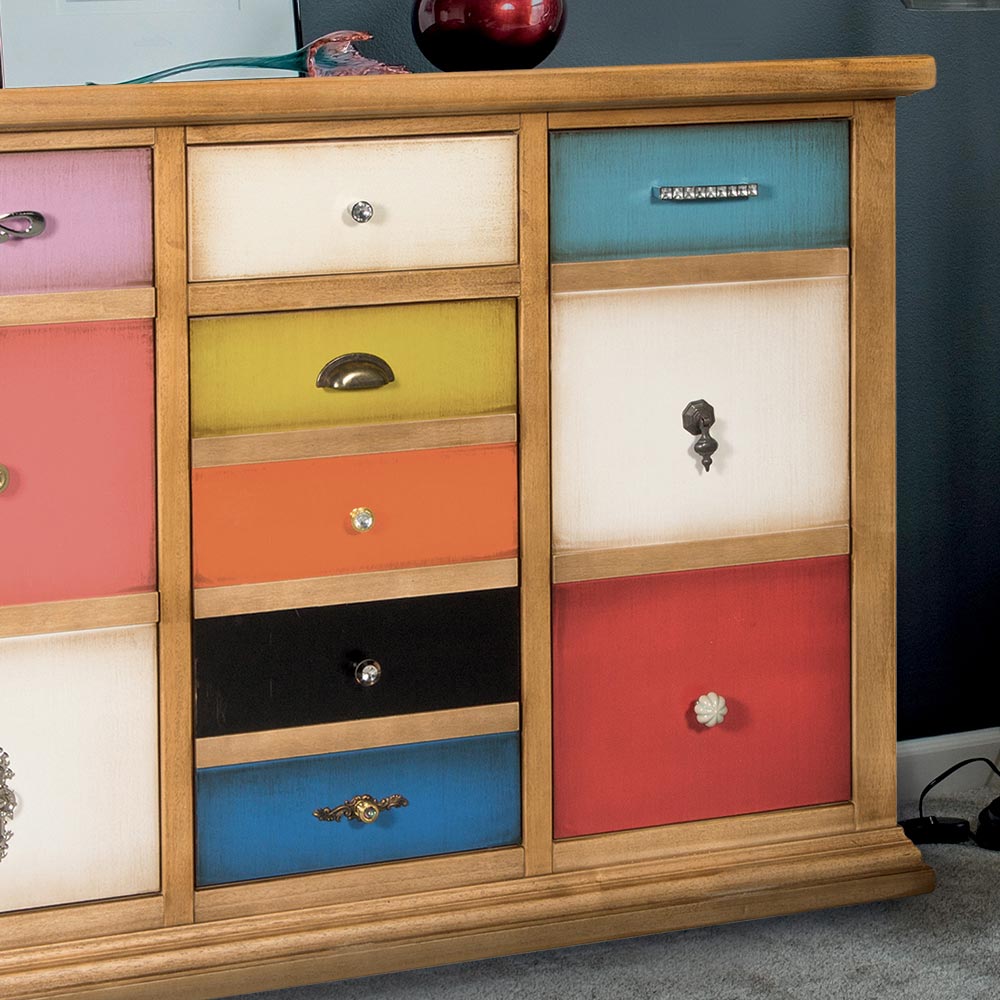 Vyrobeno v Itálii. Radost a hravost jsou vlastnosti, které popisují tento prvek s výraznými jasnými barvami a zvláštními tvary rukojetí. Originální reinterpretace kusu nábytku s velkou