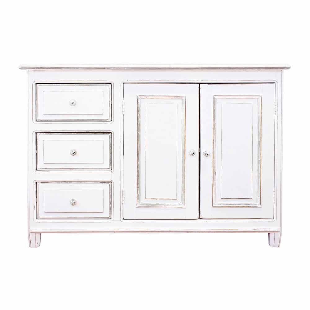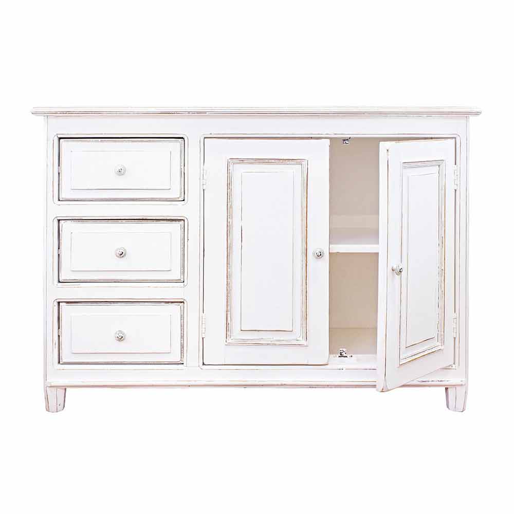 Příborník v rustikálním stylu, bíle lakované masivní mangové dřevo - Renga