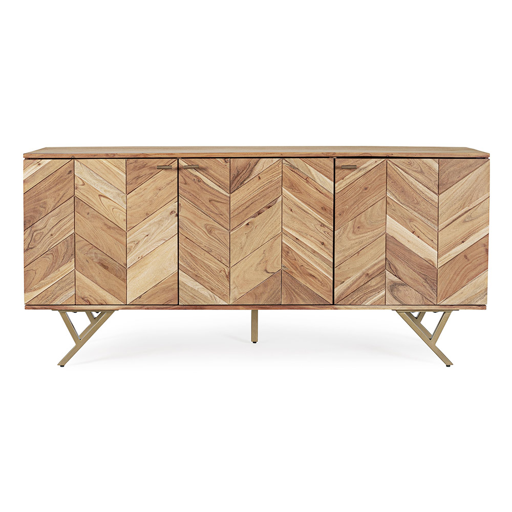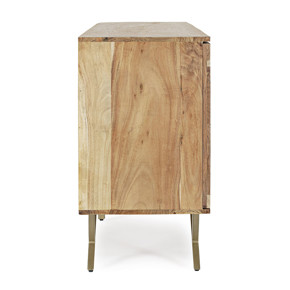 Příborník z akáciového dřeva se 3 dveřmi a ocelovými nohami v etnickém designu.