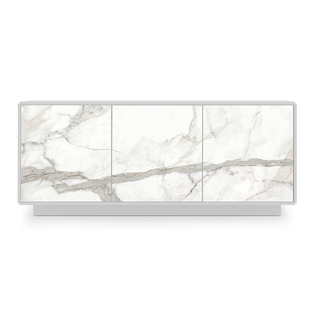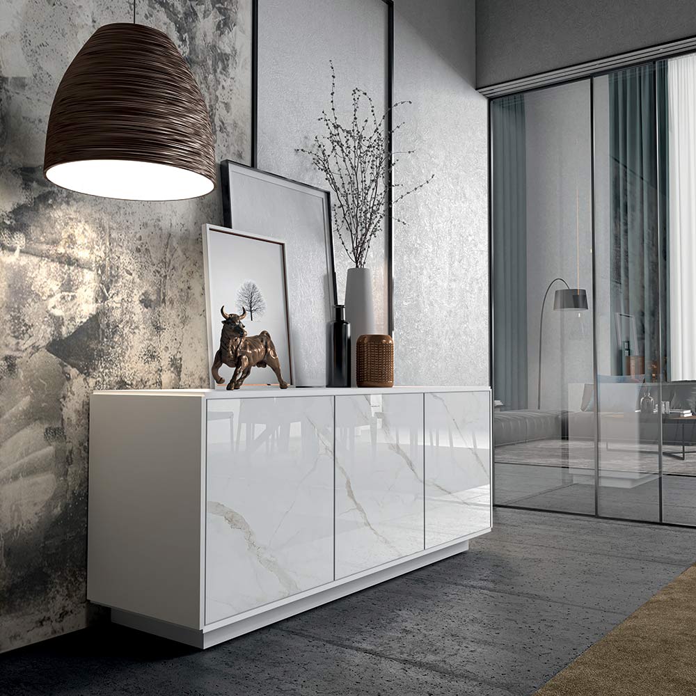 Příborník do obývacího pokoje z lakovaného dřeva s keramickými dvířky, vysoká kvalita Made in Italy.