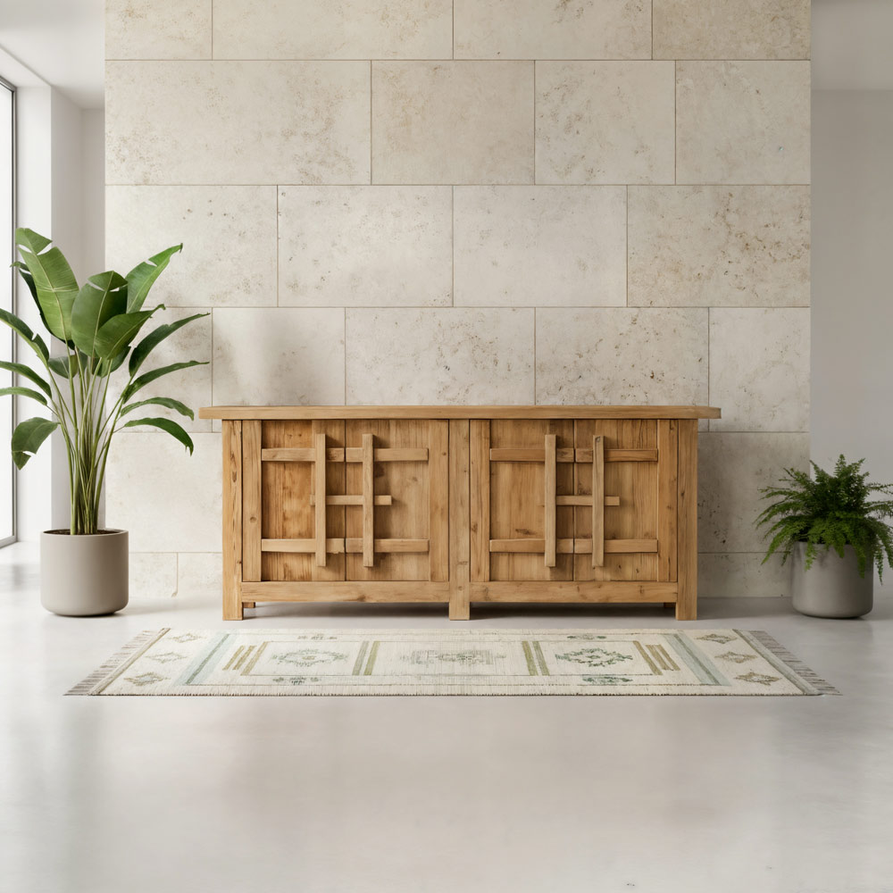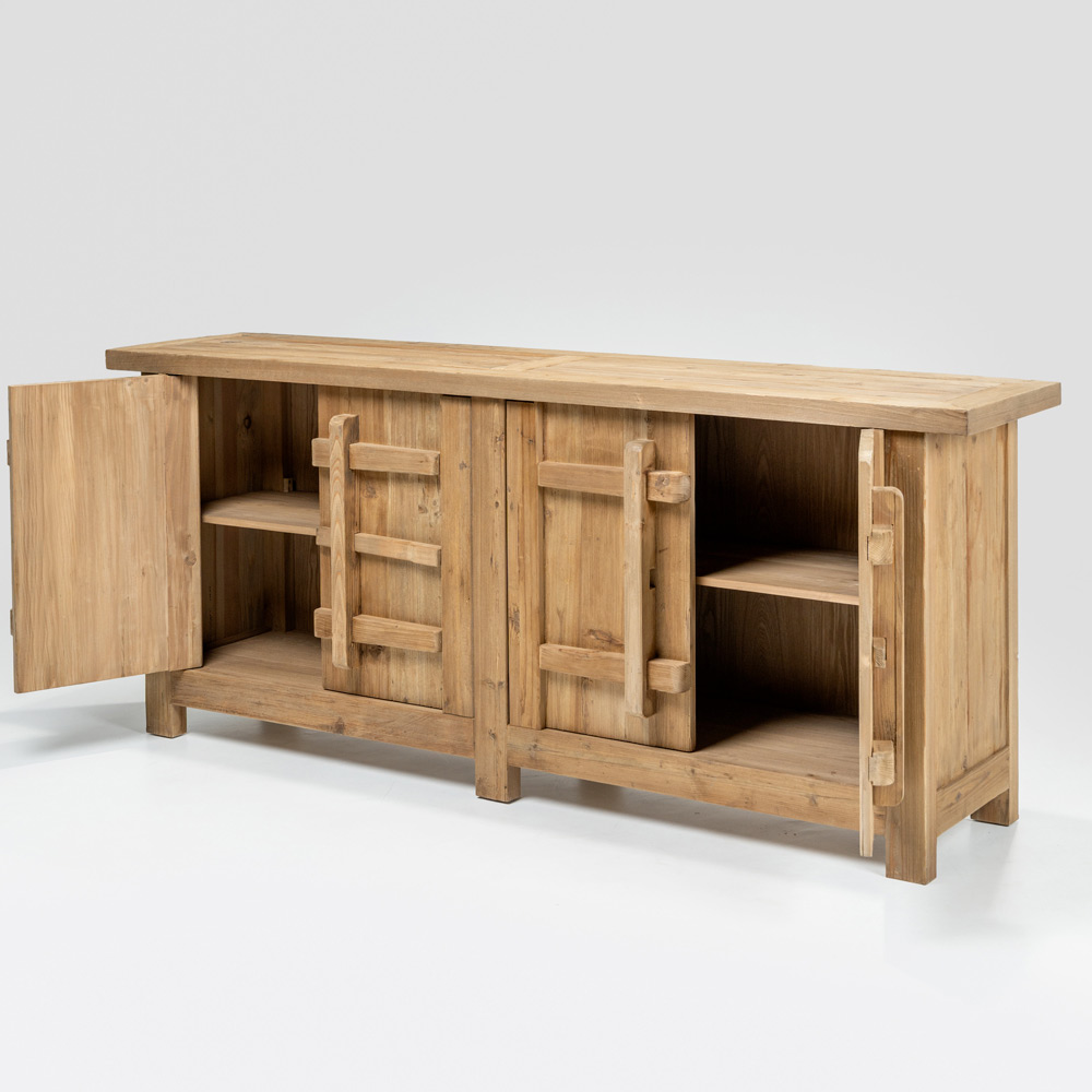 Tato přírodní borovicová příborník s autentickým a texturovaným charakterem je ideální do rustikálního, venkovského nebo přírodního stylu. Stará povrchová úprava zdůrazňuje kresbu dřeva a její nedokonalosti, díky čemuž je každý kus jedinečný a plný osobnosti.