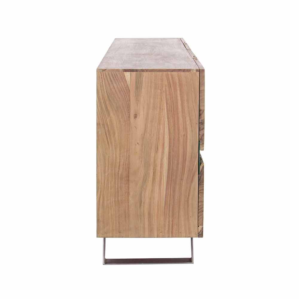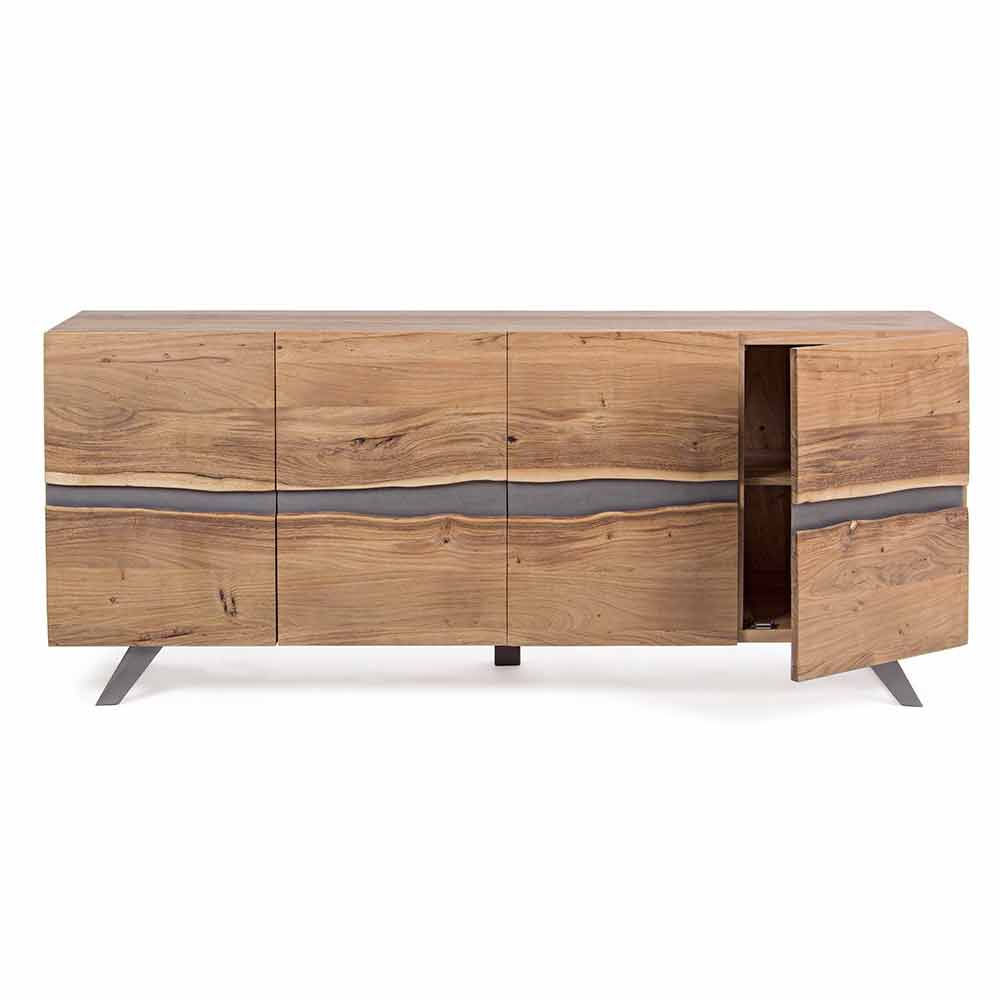 Struktura z akáciového dřeva , nohy z epoxidové práškově lakované oceli . Dveře s kovovými vložkami. Povrchová úprava na základě polyuretanové barvy. Dveřní přihrádka včetně police.