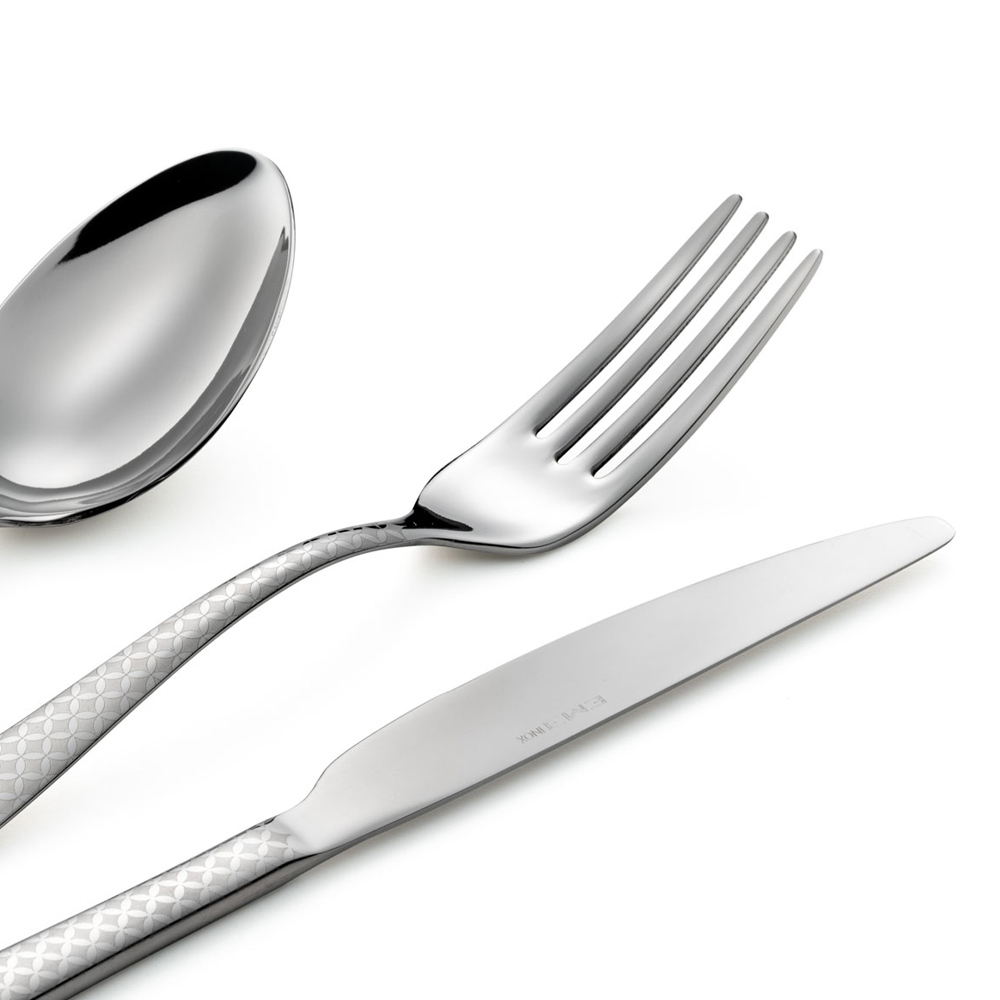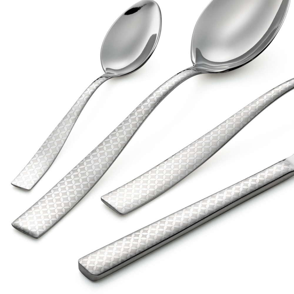 Nerezová sada příborů v minimalistickém designu s geometrickým laserovým zdobením, 24 kusů italské výroby.