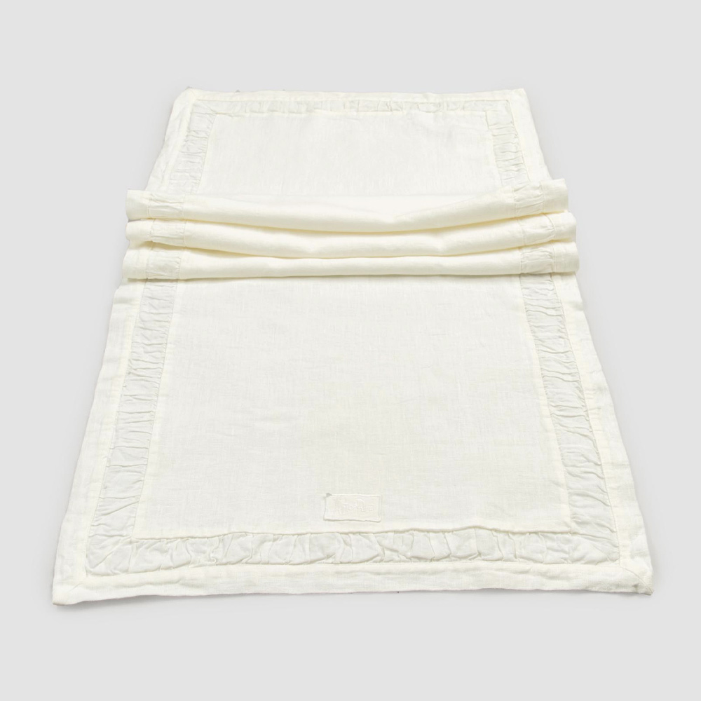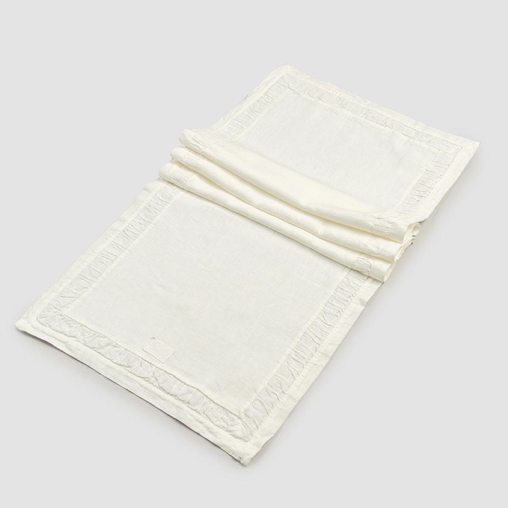 Těžký lněný běžec stolu s ražbou, luxusní design vyrobený v Itálii.