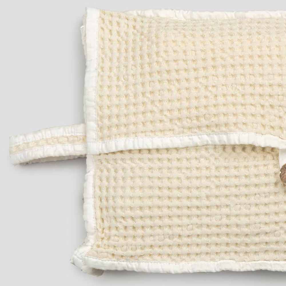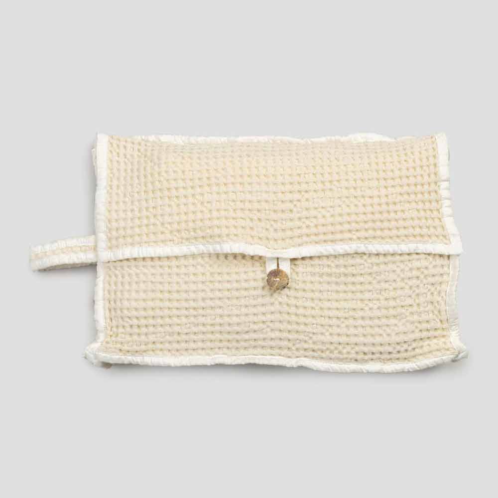 Elegantní pochette z voštinové bavlny se zapínáním na perleťový knoflík, vyrobená v Itálii.
