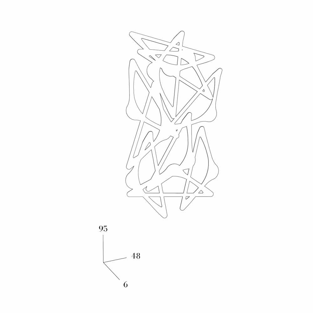 Blabla je pěkný stěna věšák v kovové laserem řezané, s tvarem chaotické a chaotický stylizované sadou závěsů.