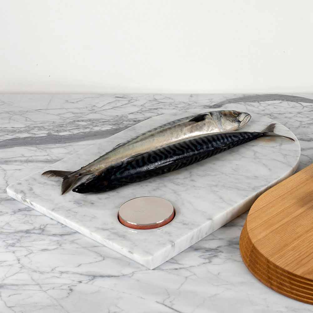 Dřevěné prkénko, mramorové prkénko a vyrobené v Itálii kuchyňské mýdlo na odstraňování zápachu.