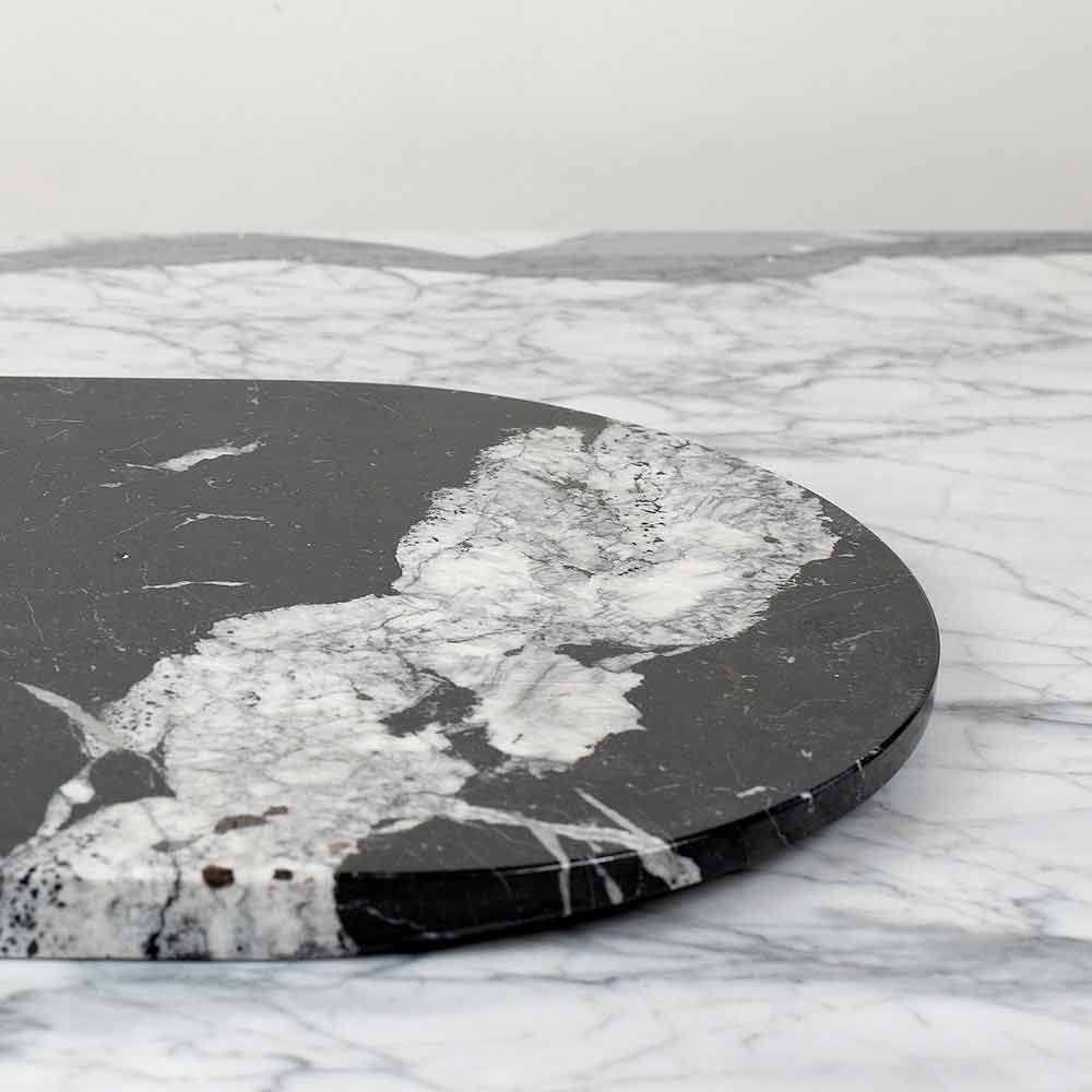 Mramor a dřevo jsou ručně vyráběné přírodní materiály, které se vyznačují žilkami a uzly, díky nimž se každý kousek od sebe mírně liší, a proto má každý předmět