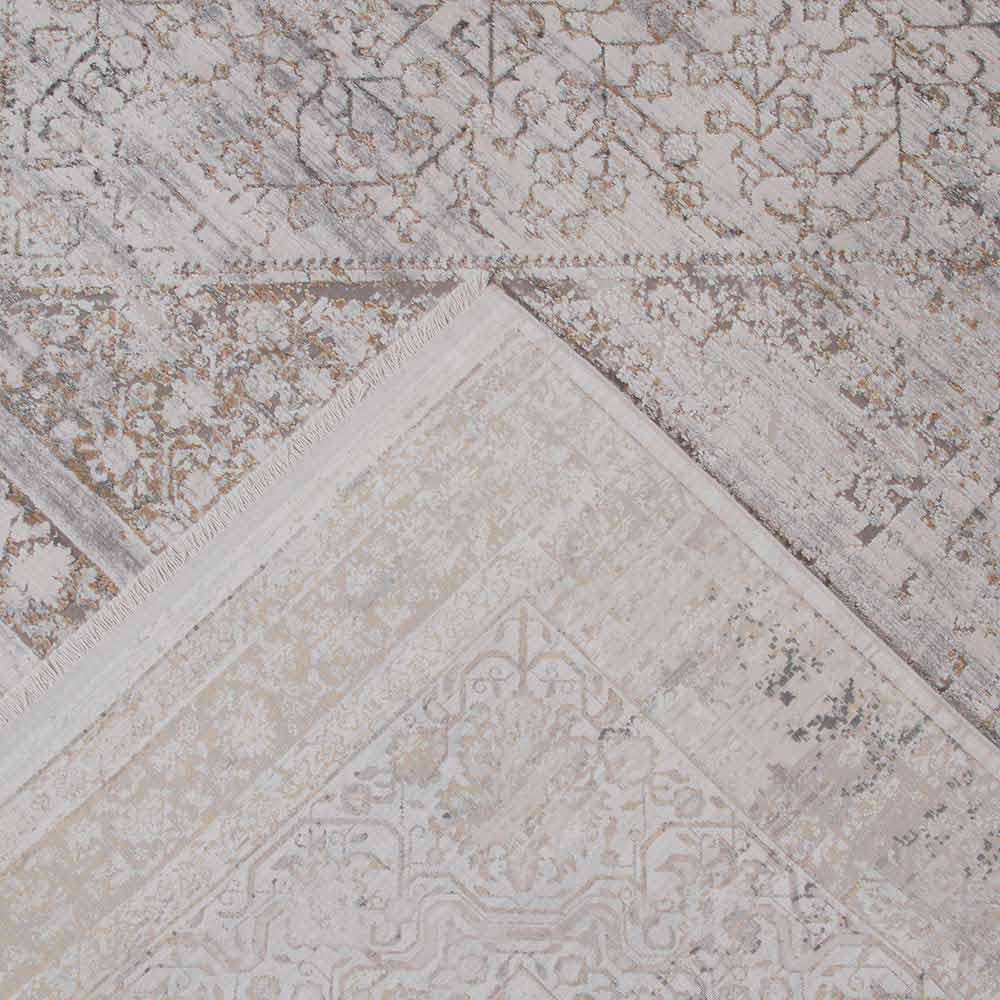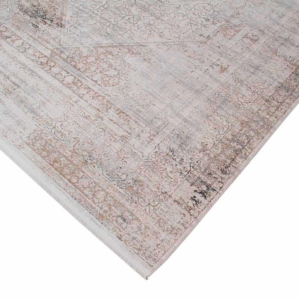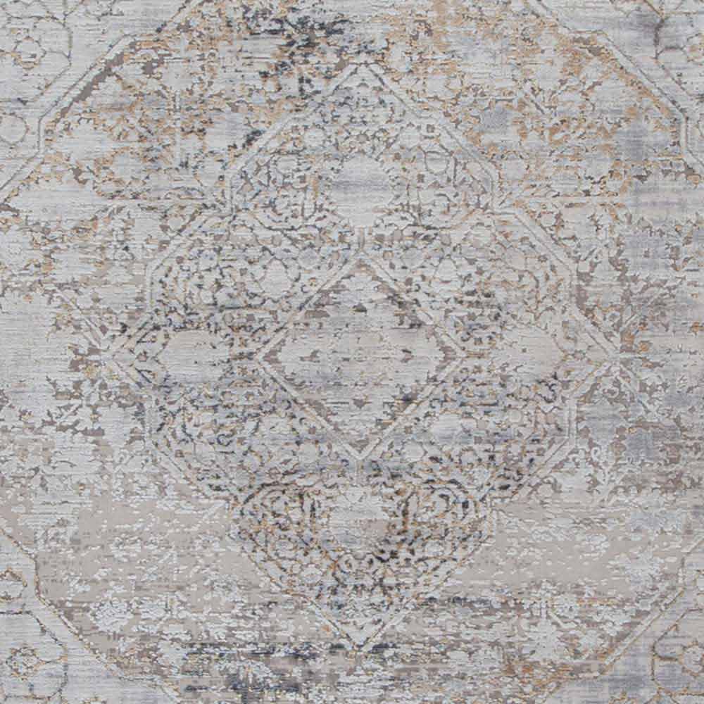 Neklasický koberec v retro designu s dekorem k dispozici ve dvou rozměrech v barvě šedé / béžové akrylové a viskózy.