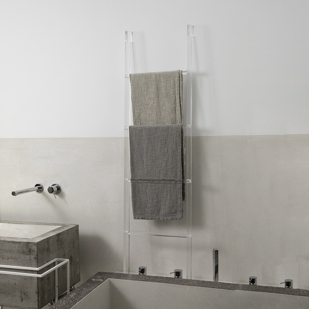 Koupelnový žebřík na ručníky z průhledného akrylového krystalu, 2 velikosti vyrobené v Itálii.